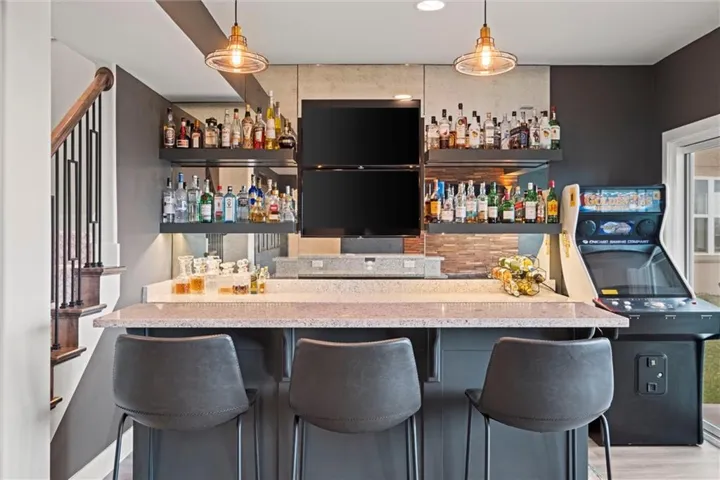 +"PublicRemarks": "Be settled before summer and enjoy morning coffee on your screened composite deck and evening cocktails on the patio by the fire pit from your walk-out location! This nearly new SAB Westhampton boasts loads of upgrades you need to see in person, including a stone feature wall, stunning built-ins at the great room and a finished lower level with front/back bar. The home features lots of windows and natural light, as well as warm finishes to compliment a variety of decor. The kitchen offers a walk-in pantry, gas range and soft close drawers/doors. The custom bar boasts a stunning mercury glass backsplash with accent lighting, shelves and two TVs (both remain!). The primary and second bedroom are located on the main level - the current owners are using the second bedroom as a home office. There’s still plenty of room for storage in the unfinished section. The garage features an upgraded Level 2 Electric Vehicle charging outlet. You’ll love all the WOW finishes here - and not having any neighbors directly behind you! Wonderful community amenities include snow/mow, a pool, club house, pickleball court, play area, putting green and community events - plus you’re super close to Heritage Park. HOA is $900/year + $190/month for maintenance provided."