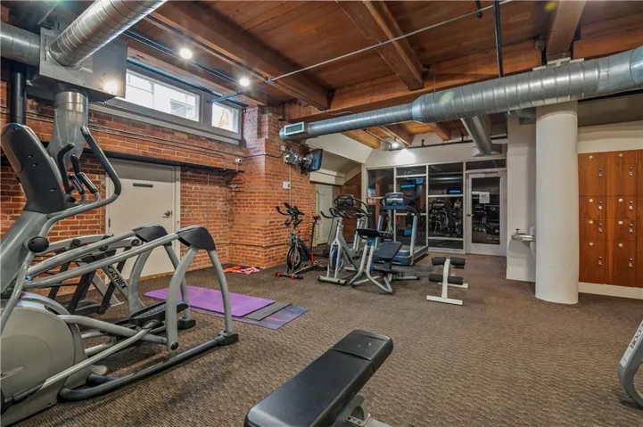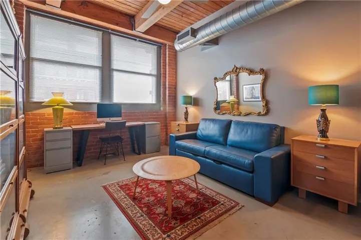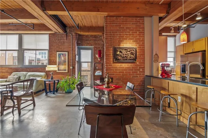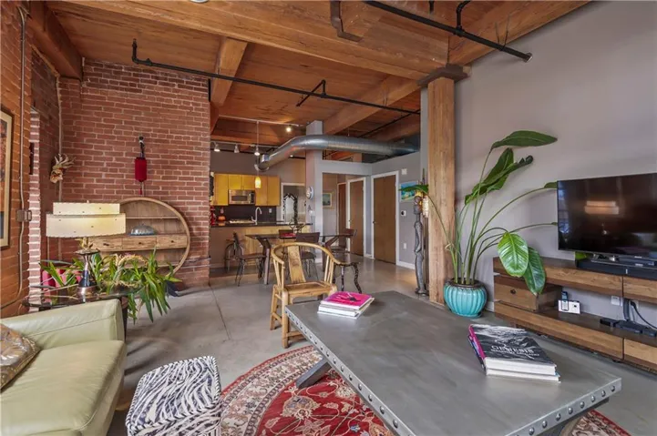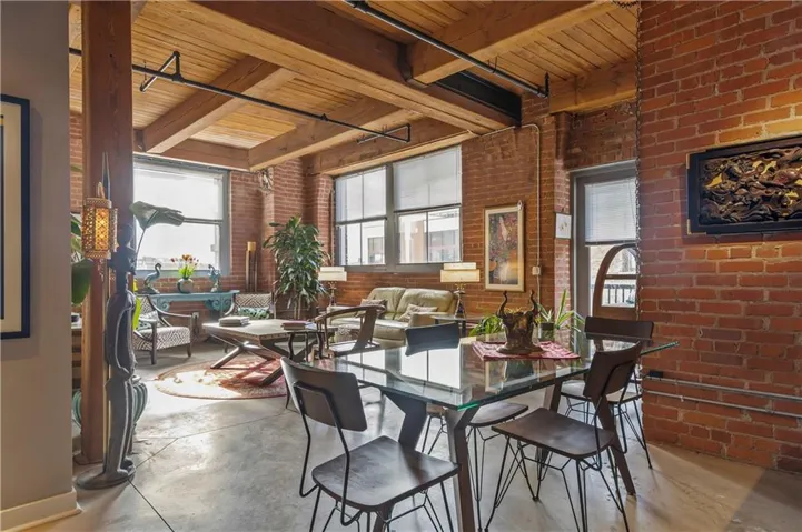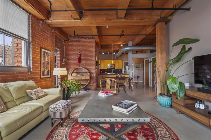 The open-concept design creates a bright and airy atmosphere, ideal for entertaining or unwinding. Towering ceilings add a dramatic touch, while expansive windows offer breathtaking city views. Exposed brick and impressive timber beams bring an industrial-chic flair, making this space truly one-of-a-kind.\r\n