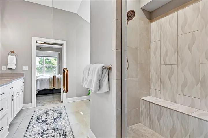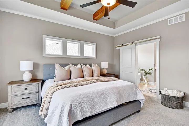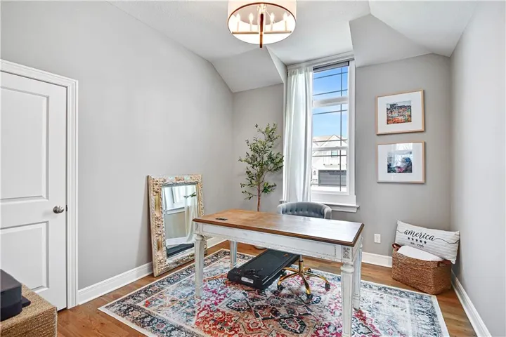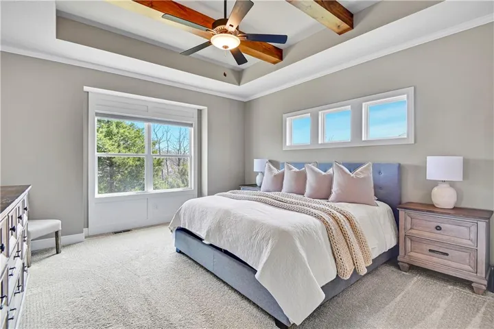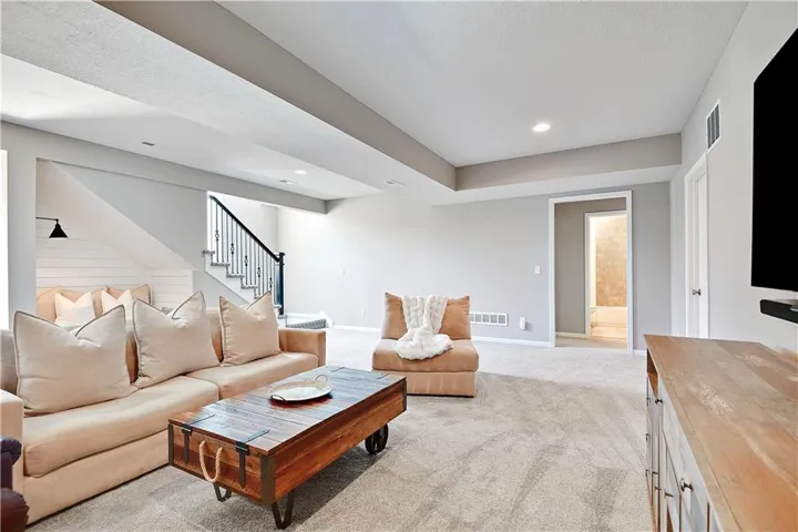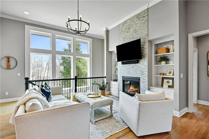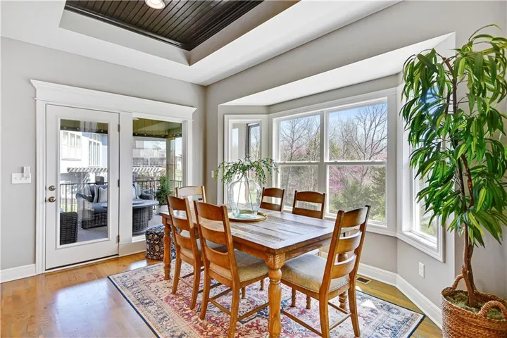+"PublicRemarks": "Stunning Reverse 1.5 Story in a fantastic neighborhood with fabulous amenities. This home backs to green space for privacy and views! Walk in to a wall of windows that take in the beautiful treed green space. There is an office or guest room at the front of the home and full bath. The primary bedroom is a delightful retreat with high ceilings & great views and a spacious and modern ensuite with separate tub & shower, double vanities & a huge walk-in closet. The kitchen is great for entertaining with an oversized island, neutral colors and classic design choices. You will fall in love with the covered deck that was greatly improved with an automatic, remote controlled MagnaTrack rolling screen that is engineered to withstand hurricane force winds and with the screen woven so tight it actually adds privacy (you can easily see out, but you can't see in), it blocks the sun, wind, bugs, and creates such a comfortable atmosphere that the sellers use that space year round. The walkout lower level has a wet bar area which makes the recreation room truly functional. There are two more guest rooms & a full bath and two separate storage areas. The back yard is fenced with iron fencing, so no maintenance, and strong enough to withstand a tree falling. It has 3 gates and is built in sections making it ideal for the long term. The garage floor has been epoxied. Integrated water softener system stays. Alarm system stays including window sensors. Interior freshly painted with highest grade of Sherwin Williams paint. Close to the pool & tennis, but very quiet street as there is not a lot of through traffic. Deck & railings were stained recently. All shower heads were replaced and kitchen faucet was replaced. Home has been professionally cleaned every 2 weeks and windows have been professionally cleaned inside and out every spring. Neighborhood amenities include multiple lakes/ponds with live fishing, hiking/biking trails, playgrounds, 2 pools, tennis & pickle ball court..."