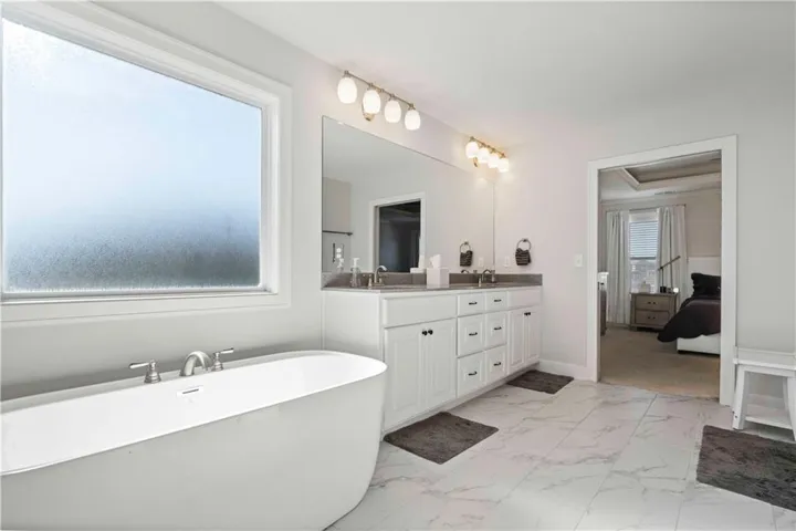 UPGRADES, UPGRADES, UPGRADES! WELCOME HOME! THIS MAGNIFICENT HOME IS WAITING FOR YOU! Step into your contemporary sanctuary, where upon entry, you are embraced by soaring ceilings and a delightful cascade of natural light! The family area and kitchen create an inviting space for entertaining. The kitchen dazzles with a spacious, exquisite island, gleaming stainless steel appliances, and a generous walk-in pantry. Upstairs you will discover four inviting bedrooms, three luxurious full bathrooms, and a conveniently placed laundry room. The master suite unfolds like a personal haven, adorned with chic cove lighting, a grand tiled walk-in shower, a soothing soaking tub, and a vast master closet. The secondary bedrooms are equally splendid, boasting ample closet space and a beautifully tiled bathroom. The laundry room offers convenient access on bedroom level. The finished basement reveals an additional bedroom, a full bathroom, and a recreation room, providing endless opportunities for entertainment and leisure. Step outside to the fenced backyard, complete with patio space, perfect for tranquil evenings or lively outdoor festivities! As the Spring season approaches, lawn maintenance will be a worry of the past. Property owners have taken initiative by verticutting the lawn, and fresh seeds have been spread across both the front and back yards. Furthermore, the landscaping now showcases freshly mulched beds with boxwoods enhancing the beauty of the home's rear exterior.\r\n
