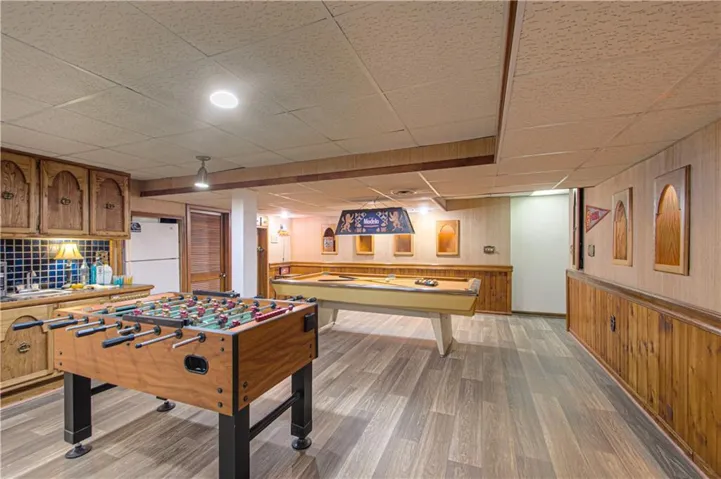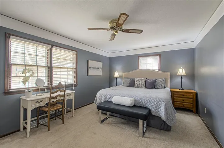 +"PublicRemarks": "Wow! Stunning and Spacious Traditional Colonial 2-Story, offering over 3690 sq ft! A Wonderful floor plan! The main level features a Formal Living room, a large Family room with a brick fireplace and wet bar, a Dining room, a Laundry room with built-ins and Clothes Chute, a nice sized Mud room, Kitchen with Breakfast Island, Stainless-Steel appliances including TWO ovens, frig and a newer dishwasher. To complete the main level is a versatile Office/Study with built-in shelving, cabinetry and 3 desk stations…Perfect for a Remote Work, Homeschooling or Home-Based Business! The main level boasts newer luxury vinyl plank flooring and thermal pane windows. Upstairs, the Spacious Primary Bedroom boasts an ensuite full bath and Walk-in Closet, complimented by 3 additional bedrooms, an updated full bath and TWO Linen Closets! The Super Cool Finished Basement with newer flooring has Super-Sized Rec Rooms with a wet bar and more than enough space for all your hobbies, crafts, media, etc.... including pool and foosball game tables! A Bonus is the NON-conforming 5th Bedroom, Full Bath and Lots of Storage Space! Curb Appeal Abounds with a circular driveway, Extended Front Porch with Stately Columns and a New Front Door! The OVERSIZED side-entry 2+ Car Garage provides extra storage and workshop space, with direct access to the fenced backyard with extended patios…Ideal for entertaining! The Extra Concrete Pad behind the fence offers more parking or storage space. Fresh interior paint on the 1st and 2nd Floors and low-maintenance siding make this home a MUST SEE!"