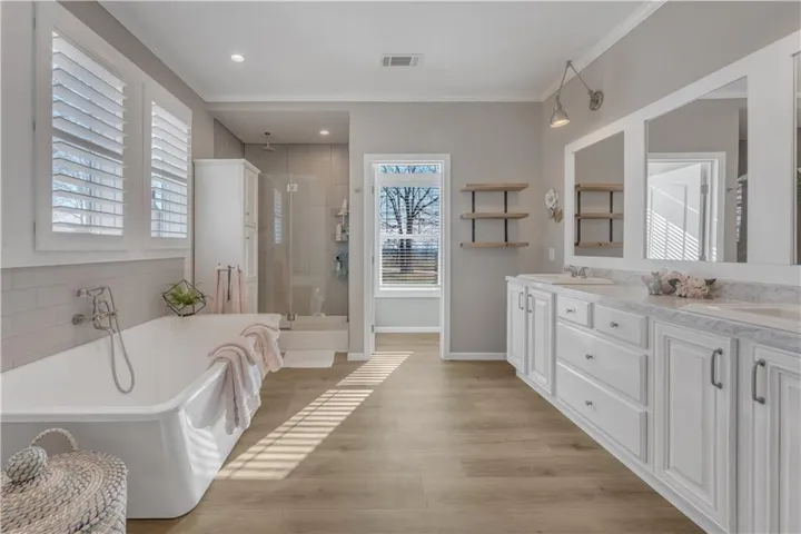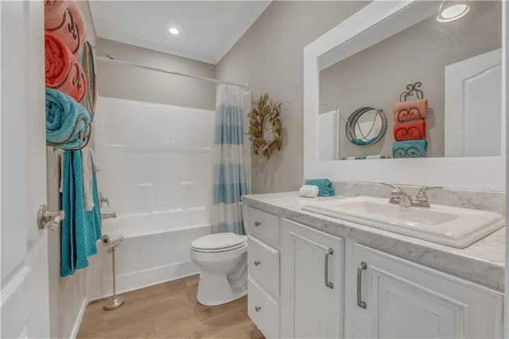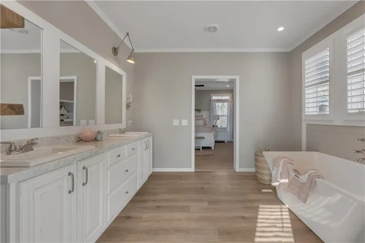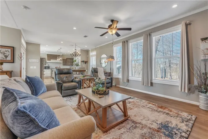 Welcome to this exquisitely designed home, The Laney, a cross mod home built by Southern Energy Homes, where elegance meets functionality in every corner. A charming wrap-around porch welcomes you into a spacious foyer. The expansive living room transitions into a bright, modern kitchen with handcrafted cabinets and ample countertop space, including a generous center island. The luxurious master suite features dual walk-in closets and a glamorous en-suite bath with a soaking tub, stall shower, and his-and-hers vanities. The secondary bedrooms are generously sized, with a roomy second bath and guest bath for comfort. This home also includes a versatile utility/laundry/mud room and ample storage space throughout.\r\n
