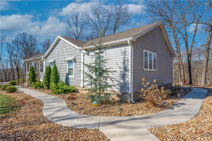 The property features a detached 2-car garage with a heated half bath, extra storage, and a workbench. There is also a 24'x12' portable shed with electricity. Set on a breathtaking 50-acre expanse, the meticulously landscaped yard has two driveway entries, perennial flowers, ornamental trees, and evergreens. Enjoy scenic trails through lush timber, perfect for exploration. Envision creating a private oasis with a 2-3 acre lake. The property is fenced on three sides, with 1,378 feet of highway frontage for easy access. Abundant wildlife, including deer, wild turkey, and rabbits, make it ideal for hunting and observation. Don't miss this exceptional land where adventure and tranquility await! Join us for an Open House on April 12 11am-3pm!