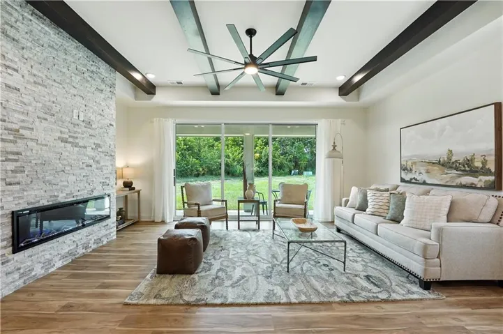 +"PublicRemarks": "Welcome to the innovative design and modern style of Hakes Brothers Homes! This stunning BRAND NEW model home- NOW OPEN!! The Lacey, featuring the Modern Prairie elevation, has 1980 Sq. Ft. all on one level to make everyday living more convenient and accessible with it's zero entry, NO STEPS! This home offers seamless living with 10ft ceilings and 8ft tall doors that create an airy, spacious fell and GORGEOUS Stacking Glass Slider making indoor/ outdoor living a breeze! The gourmet kitchen is a showstopper, boasting sleek granite countertops, custom cabinetry, stainless steel appliances and a generous island perfect for cooking and entertaining. The Great Room is the perfect place to unwind and enjoy your favorite shows, all while taking in the stunning floor-to-ceiling fireplace and the rich wood beam detailing in the vaulted ceiling. The HUGE primary suite provides tranquil escape with a spa-like bath, lighted & heated mirrors, zero entry all tiled walk in shower, linen and walk in closet. Enjoy your charming covered patio ideal for morning coffee or evening relaxation. This home blends modern luxury with effortless convenience! Discover the charm of Hidden Hills – a community that has it all! Come see for yourself what makes this neighborhood so special, with homes starting at just $329K"