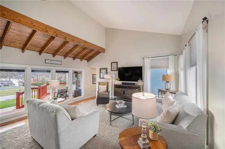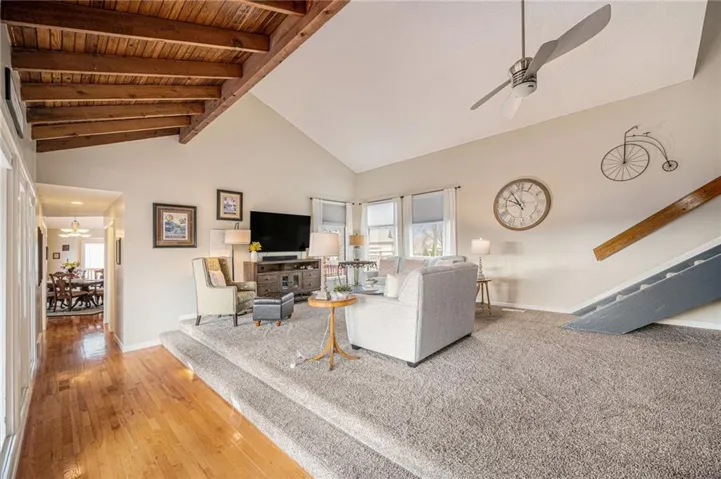 "LongDescription" => "Living room with a vaulted wooden ceiling, a wall mounted mini split, and dark wood finished floors"