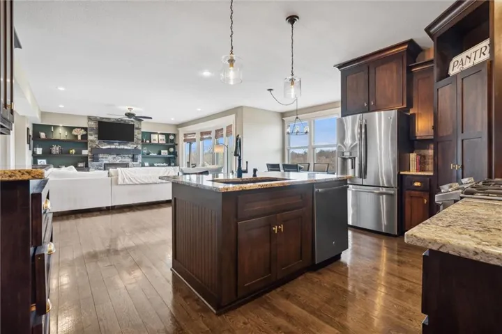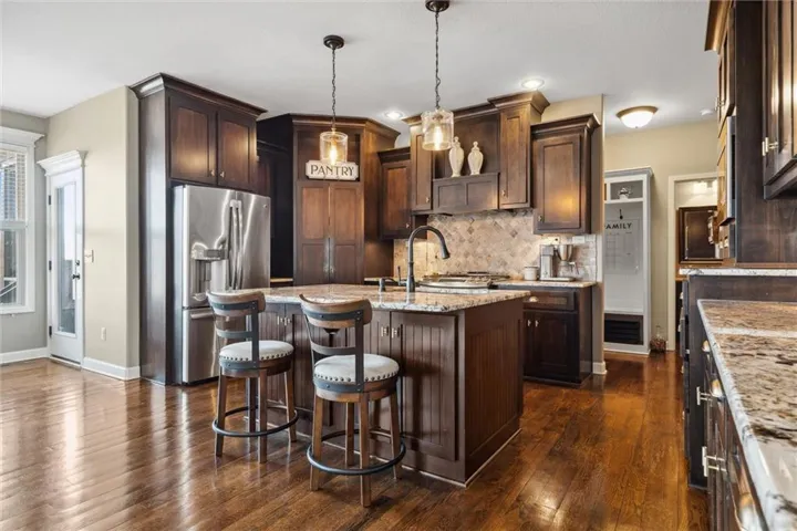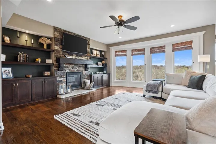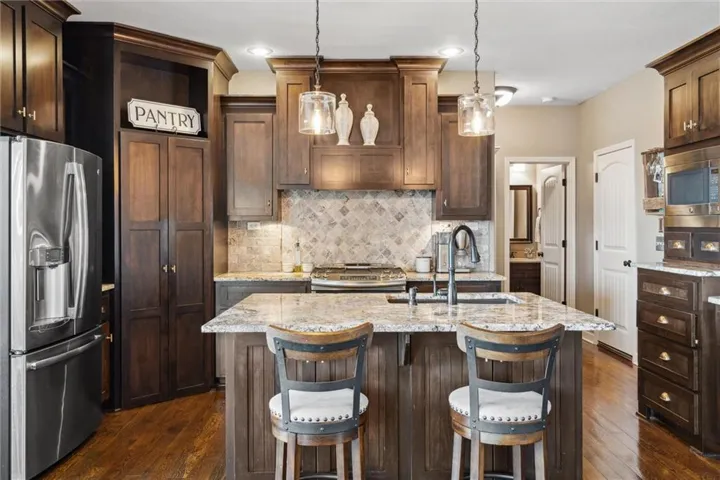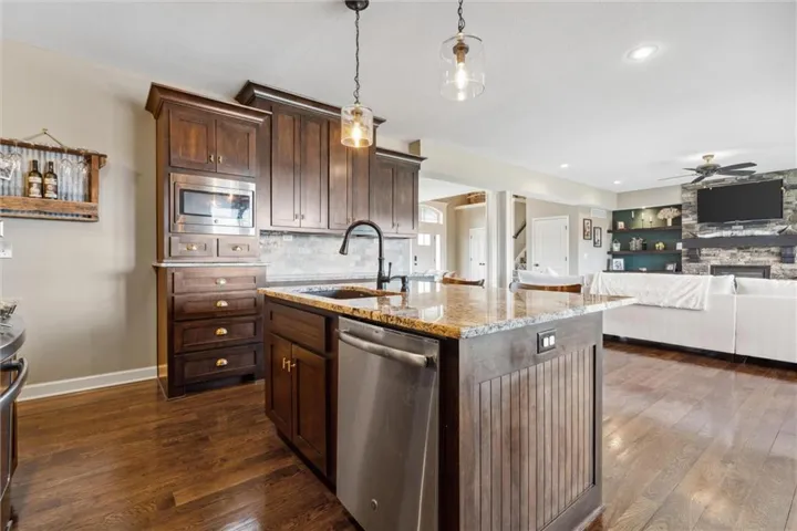 +"PublicRemarks": "Don't let this one get away! This home in Tuscany Hills has stunning hardwood floors, large granite island with seating, stainless appliances, stone fireplace surrounded by built-ins and open shelves, mudroom and huge covered deck overlooking the private fenced backyard. The finished walkout basement features a large wet bar with gorgeous granite, sliding barn doors and full bath. Stained concrete floors and plenty of storage. Backyard landscaping includes large seating area plus fire pit, koi pond and BBQ area making this backyard perfect for entertaining. Plenty of wildlife in this private scenic backyard! Enjoy watching the deer and turkey daily! Home is Located in a quiet neighborhood with easy access to highways, airport, shopping and dining. Home has it all! Staley High School!!"