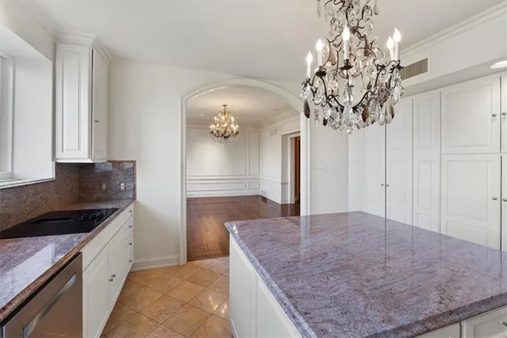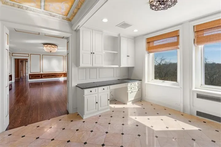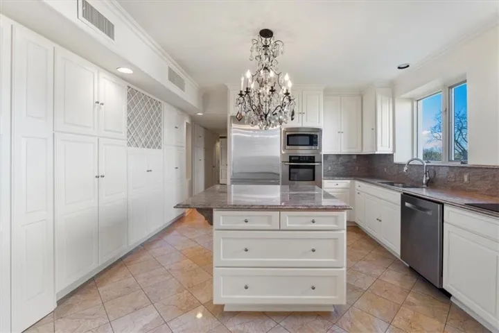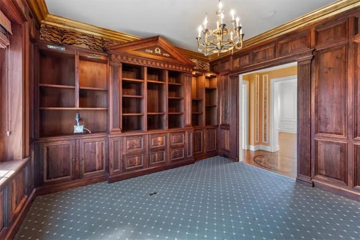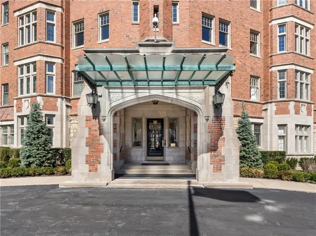 +"PublicRemarks": "Historic elegance at the Walnuts! This completely remodeled luxury home boasts views of formal gardens and treed acreage in three directions. The expansive and grand living room features leaded-glass bay windows, a gas fireplace with marble surround, and handcrafted lighting. The chef's kitchen is a wonderful gathering space with marble floors, a large island, high-end stainless steel appliances, large pantry, and stunning custom light fixtures. Adjacent to the kitchen is the formal dining room with large windows overlooking mature gardens. The stately library is paneled in Missouri walnut, with a marble wet bar and half bath. The huge primary suite includes two large bedrooms and two separate full bathrooms - both with abundant closet space (This suite could easily be converted back to two separate bedrooms). This spacious unit also includes a third bedroom, laundry, and cedar closet. The Walnuts is a luxury property sitting on 10 acres of beautifully manicured grounds, and is within walking distance to the Plaza and Loose Park. With newly renovated common rooms, exercise room, card room and catering kitchen + unparalleled concierge service, the Walnuts is KC's most luxurious address!"