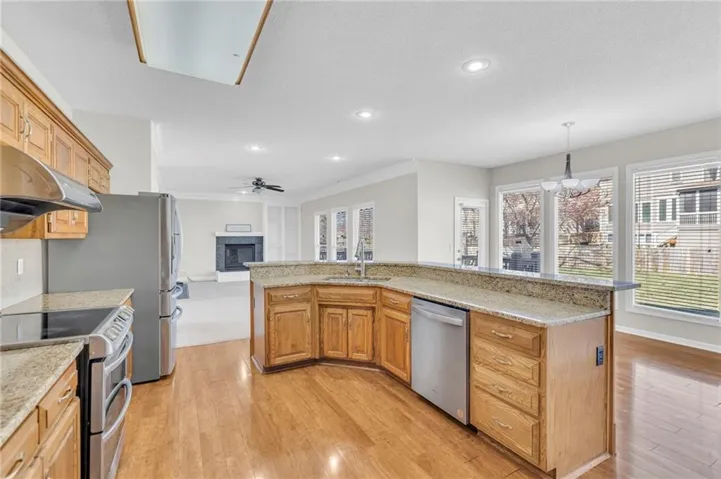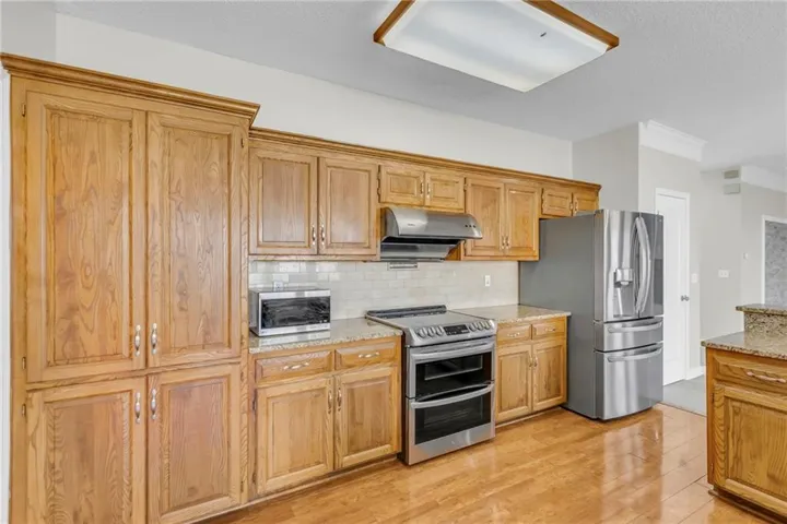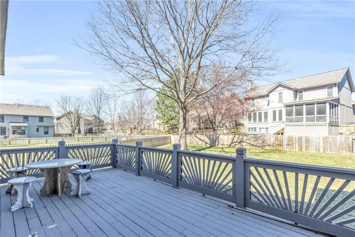 +"PublicRemarks": "You don't want to miss this beautiful move-in ready 2-story home on a quiet Cul-De-Sac in Lancaster Weybury. Walk to Top rated Heartland Elementary, feeds into award winning BLUE VALLEY schools. Brand NEW roof and gutters! NEW interior paint in designer color! Newer HVAC. Open and bright floor plan with large kitchen island, granite countertops, S/S appliances and plenty of cabinetries, breakfast room walks out to the newly painted deck, and overlooks the leveled backyard, formal dining room and cozy living room with fireplace and custom media wall. 2nd level offers 4 well-appointed and spacious bedrooms and 3 updated full baths. Spacious Master suite comes with 2 walk-in closets and a bonus room that can be used as a nursery or home office. Finished lower level features brand new carpets, wet bar and large open space for extra living space and entertaining. Ample storage space! Prime location, close to everything! Hurry before it's gone!"