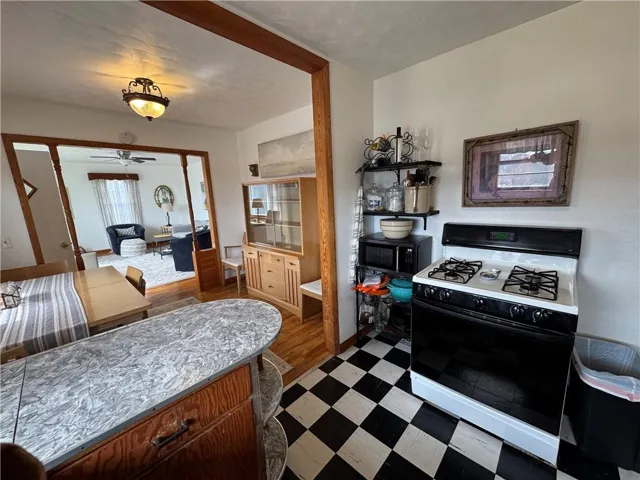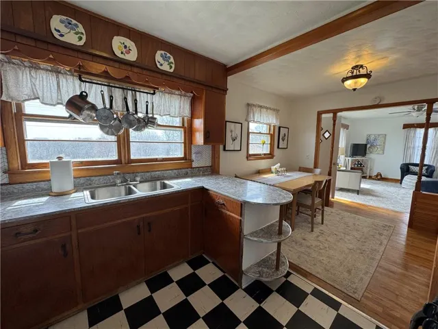 +"PublicRemarks": "Mid-Century charm throughout this inviting two-bedroom, one bath ranch home offering hardwood floors in living room and bedrooms. Large bay window in living room offers lots of natural light throughout the home. Unique for its age this house offers an open floor plan feel as the living room, dining room and kitchen flow into one another. The cozy kitchen is as cute as it can be offering retro style cabinets, checkered floors and gas stove. The laundry room is located off the second bedroom to the back of the home. Full basement offers lots of storage and inside entrance. This property is situated on a double lot offering opportunity for a large garden, entertaining area, pet run, etc."