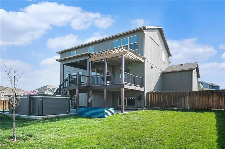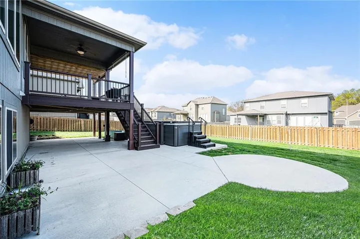 There’s a reinforced concrete pad and electrical supply that’s ready for a hot tub, swim spa, or whatever outdoor feature you’ve been dreaming about. Stairs with a built-in safety gate lead down to a generous fenced-in backyard.\r\n