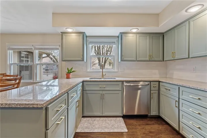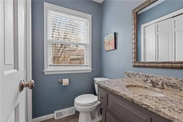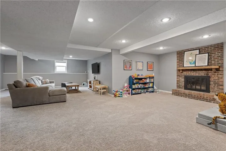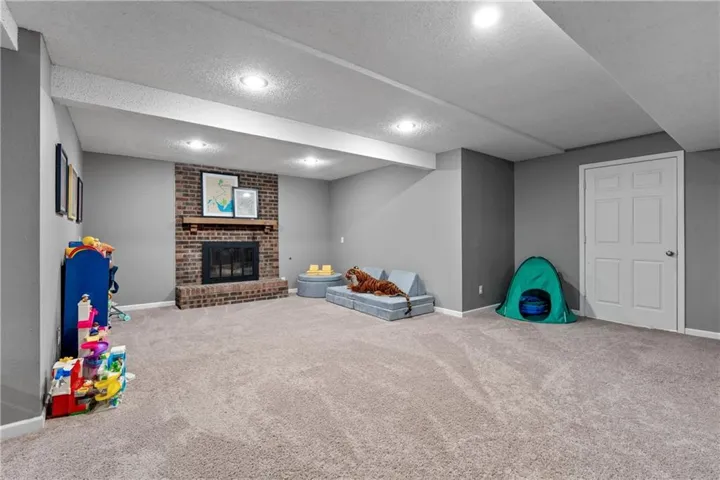 +"PublicRemarks": "Welcome to this beautifully updated 1.5 story home in the heart of Lenexa! As you enter you are greeted by a breathtaking Great Room featuring a floor-to-ceiling brick fireplace, vaulted ceilings, and built-ins, making it a perfect space for gatherings. The updated kitchen boasts granite countertops, painted cabinets, stainless steel appliances, and a breakfast area. The main level primary suite offers dual closets and an ensuite bath with double vanities and a walk-in shower. Upstairs, you will find three spacious bedrooms, two bathrooms along with a bonus loft area that has built-ins—ideal for a cozy reading nook, play area, or home office. The finished lower level provides a large rec room, a bonus area with a charming brick fireplace, a non-conforming 5th bedroom, and a full bath, making it perfect for guests or additional living space. Additional features include a newer AC and a new hot water heater. Outside, the large backyard offers a privacy fence and patio, perfect for enjoying outdoor activities or relaxing. This home has been thoughtfully updated throughout and is truly move-in ready. Schedule your showing today!"