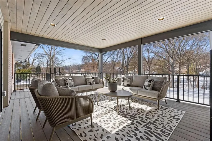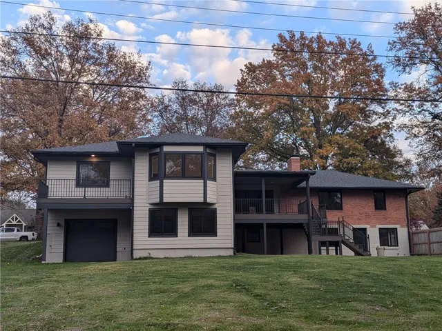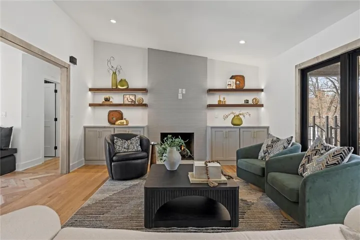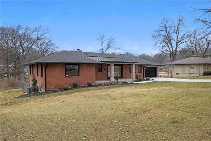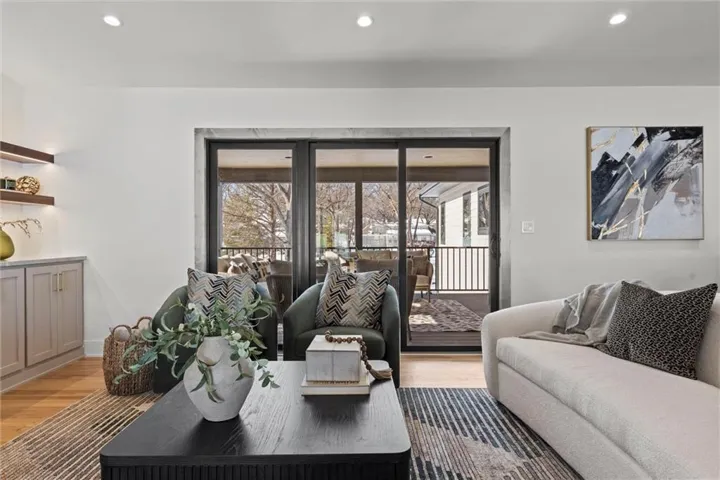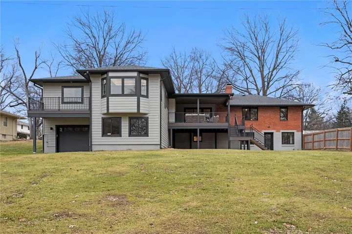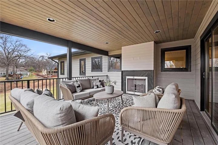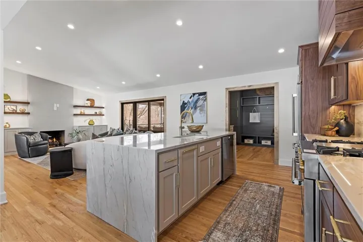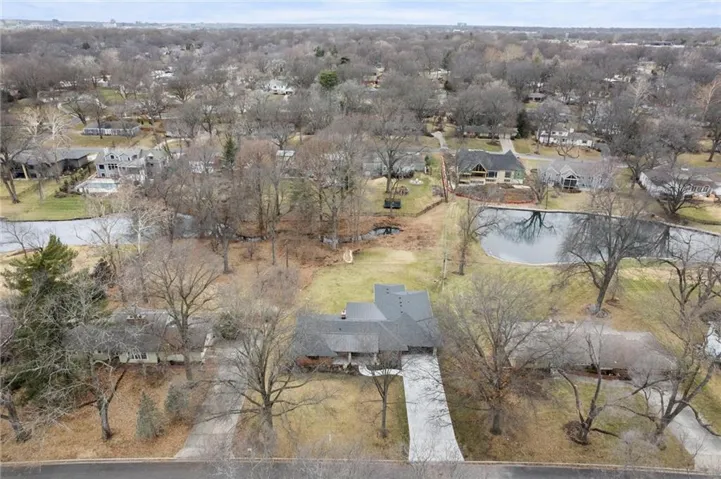 +"PublicRemarks": "One of a kind luxury retreat – a completely reimagined Leawood ranch on a sprawling 3/4 acre lot overlooking two serene ponds. The chef’s kitchen features gourmet Jenn-Air & Miele appliances, walk-in pantry, custom walnut cabinetry, and a dramatic 8ft quartzite waterfall edge island. The airy vaulted living room opens to the kitchen with floating illuminated walnut shelves and a fireplace with remote timer. Entertain on the covered lanai with black quartz fireplace, stained wood ceiling and composite decking with a wall of glass opening to the living room; it's a lovely open air extension of your living space. The owner's wing offers peaceful sunset pond views on your fresh air terrace, an indulgent soaking tub, an XL zero-entry shower with dual heads, and a custom walk-in closet with fully adjustable built-in cabinetry and laundry room. A sophisticated office space is near the primary suite for work from home flexibility or nursery possibilities. Stylish organization station has floor-to-ceiling built-ins, a coffee bar & pantry. Impressive foyer with oak herringbone flooring, custom crafted waterfall edge staircase with modern luxe 15ft spiral lighting. 3 addtl main level bedrooms and 2 baths including an emerald tiled shower and a luxurious guest suite with private bath. The lower level has endless possibilities for entertainment, with a wet bar, GE Profile wine fridge, full size refrigerator, custom cabinetry, designer tile, floating white oak shelving and knurling hardware, spacious family room with sleek brick fireplace, a media room with floating underlit built-in cabinets. Additional spaces include a game room, a gym studio with fitness flooring and 9ft tall glass wall, and a third garage ideal for a boat, car, or workshop. With practical features including smart thermostats, security lighting, WiFi-enabled garage dr openers, new Anderson casement windows, and 96% high-efficiency zoned HVAC systems, this home offers ultimate comfort and peace of mind."