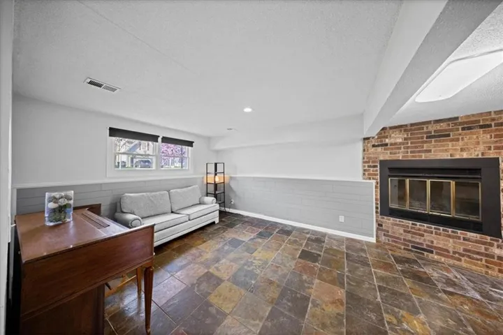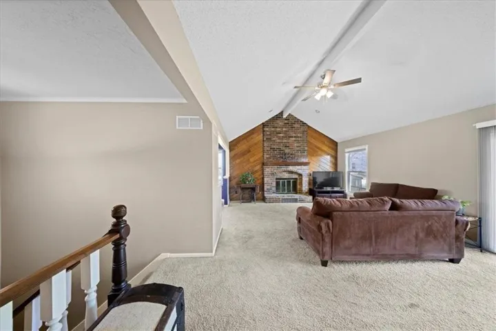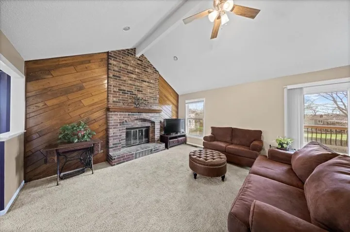 Accessible from the living area is a spacious newer deck, and large park like backyard perfectly suited for entertaining this spring. The great room with its vaulted ceilings and wood accent wall enveloping the hearth/fireplace and decorative beamed ceiling. The home is flooded with natural light. The primary bedroom has an en-suite bathroom and ample closet space, additional bedrooms are generously sized as well.The lower-level recreation room, complete with a stylish shiplap accent wall, another inviting fireplace, and slate tiled flooring provides a secondary living and entertaining space which can also hold an office area. Great sized 2 car garage, and a lot of opportunity to make this your own. \r\n