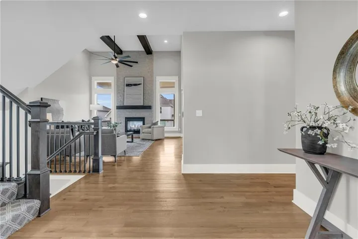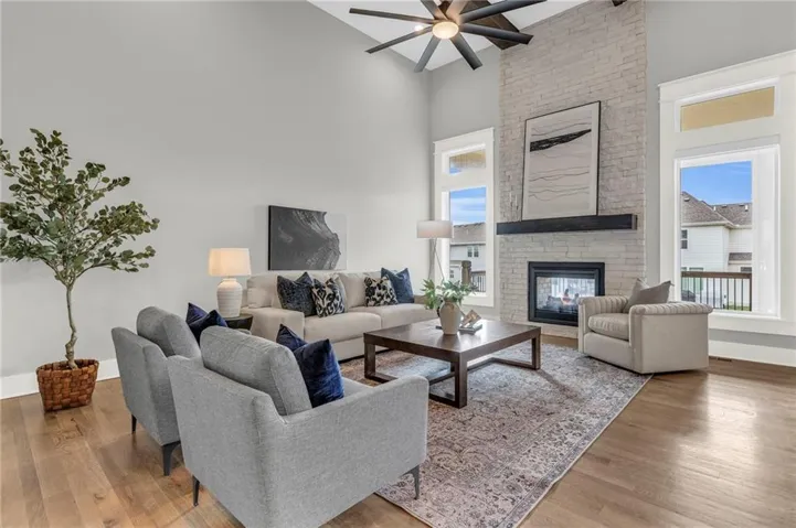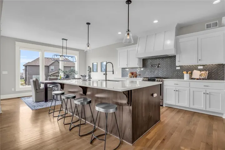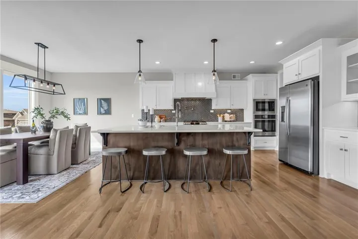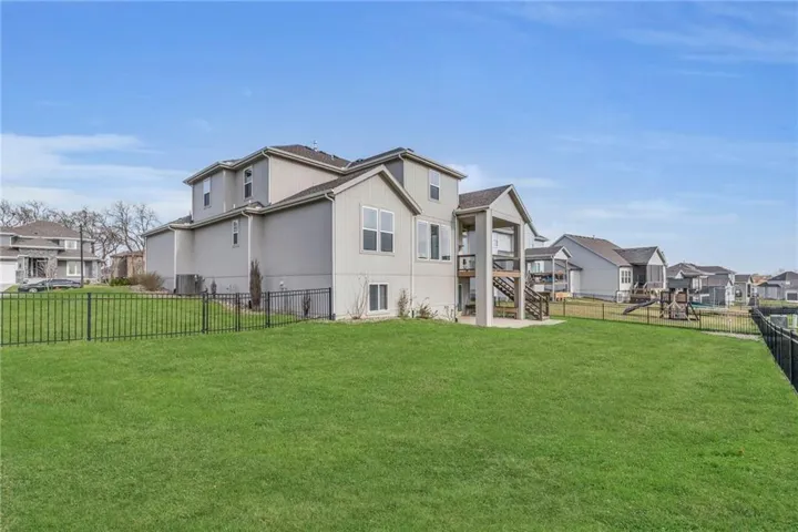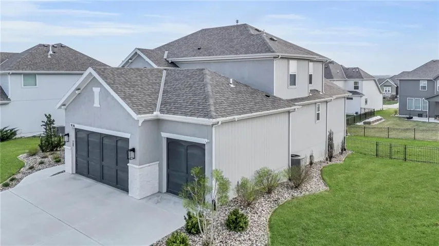 +"PublicRemarks": "Your rare opportunity to save significant amounts of money on a barely lived in custom home with dozens of upgrades. Located on a corner walk-out lot and built in 2021, the Kingston model features an open floor plan with soaring ceilings, a see through fireplace from the living room to the covered deck, vaulted primary suite, 3 car garage & walk-in pantry. The main level features a flex room that can be used as a home office or playroom. The upgrades on this lux home include a fenced yard, composite deck, automated blinds, security system, CAT6 throughout, whole house Novo water filtration, wired for hot tub, polyspartic epoxy garage floor, Super Pro overhead garage storage and heavy duty slat garage wall organization, double ovens, pot filler over the gas range, upgraded tile & shower glass, double head rainfall in the primary shower, upgraded hardwoods, stone landscape edging, river rock in landscape beds, buried downspouts, irrigation system that covers yard and landscaping, oversized concrete slab in the back yard, battery backup sump pump & extra outlets throughout. The walk-out lower basement is stubbed for a bar and bathroom and is ready for your finishes. You would spend tens of thousands more to build this home today. Arbor Lake features a 3.8 acre lake, zero entry swimming pool with water features, playground and trails. You are minutes from anywhere in Kansas City with close by freeway access. Avoid the unknown and rapidly rising costs of building due to tariffs and take advantage of your opportunity to get into a heavily upgraded home below fair market value!"