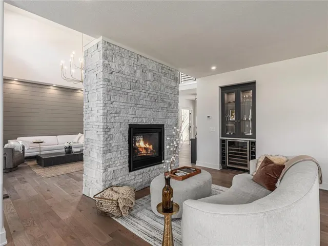 Welcome to your dream home, where contemporary design meets functional elegance! This stunning property features open-concept living spaces that seamlessly blend style with functionality. Step into the impressive two-story living room, which boasts a magnificent double-sided fireplace that serves as the heart of the home, creating a cozy atmosphere perfect for family gatherings or entertaining friends. An elegant open catwalk leads to the upstairs, adding a sense of architectural flair and visual connection between the levels. The spacious kitchen is a chef's paradise, complete with a dining area, a charming hearth room, and a butler’s pantry equipped with a sink and a walk-in pantry for all your storage needs. The hearth room features a gorgeous built-in low-lit wine bar, perfect for showcasing your collection and enhancing your entertaining experience. Kitchen refrigerator, dishwasher, microwave, garage door openers and more are included. All you have to do is move in!\r\n