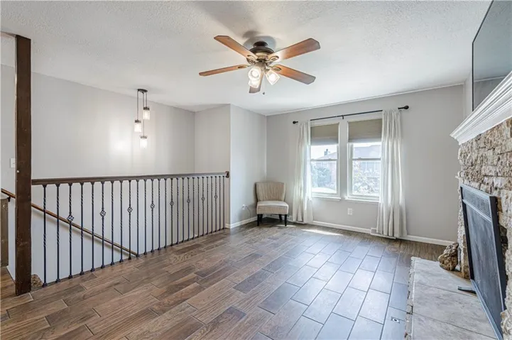 +"PublicRemarks": "Beautifully Updated Duplex in Blue Springs School District! Move-in ready duplex that blends stylish updates with flexible living space in a prime location near shopping, dining, and easy highway access. Located in the Blue Springs School District, this home features 3 spacious bedrooms, including one on the walk-in level that can double as a second living area or a private primary suite with its own full bath. The kitchen is a standout with dark cabinetry, updated tile backsplash, and stainless steel appliances, opening to a cozy dining area with modern lighting. You'll love the rich wood-look tile floors that flow through the main level, and the neutral color palette throughout makes decorating a breeze. Upstairs, enjoy a light-filled living room with a charming stone fireplace and sleek floating shelves. This space is perfect for relaxing or entertaining. The upper bedrooms are generously sized and offer ample closet space. Step outside to your fully fenced backyard with a double-level deck—ideal for hosting BBQs or enjoying quiet evenings under the trees. This home offers the space and versatility to fit your lifestyle, whether you're a first-time buyer, downsizer, or investor. Don’t miss this opportunity—schedule your showing today!"