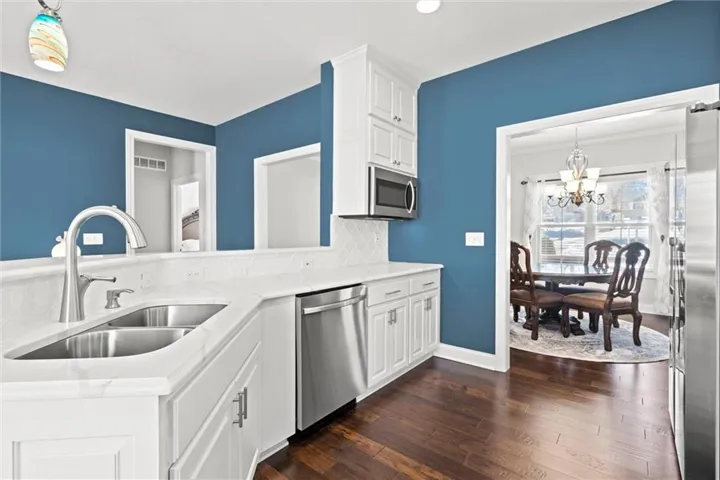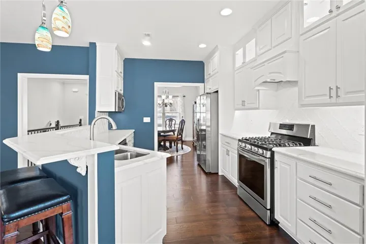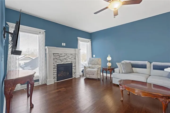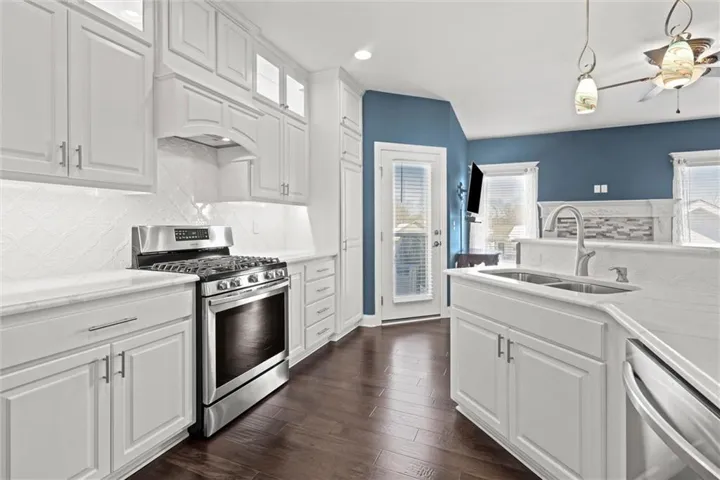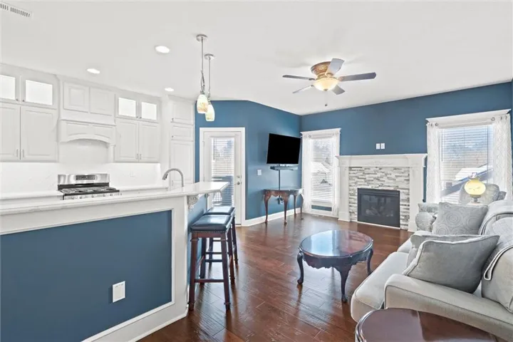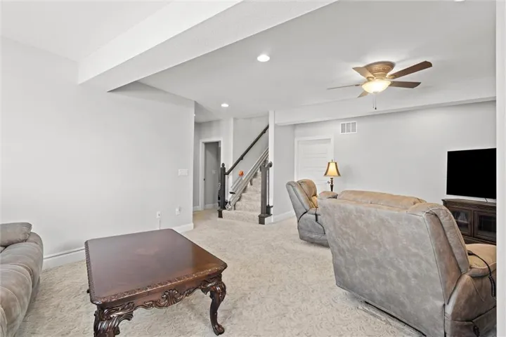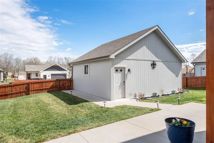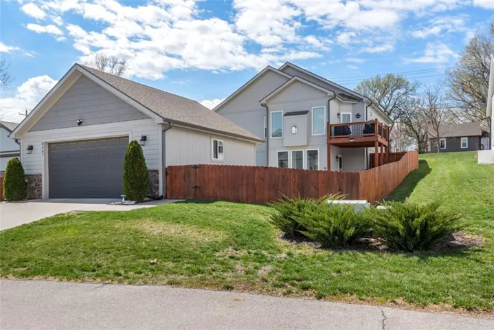 +"PublicRemarks": "BETTER THAN NEW! Welcome HOME to this immaculate De Soto charmer! Ottawa St. side parking is perfect (& legal except when it snows) for guest, carrying in groceries, etc. This home is stacked w/ luxury, accessibility, & functionality! The list of upgrades & attention to detail that was put into the home while building will for sure WOW you! You are welcomed w/ an extended large covered front porch. Once you enter the home you are greeted w/ the convenient dining room/office to your left. Through the entry you will find the open great room w/ cozy custom fireplace & kitchen. The kitchen is beautifully designed w/ beveled quartz countertops, custom LED under/upper cabinet lighting, custom exhaust fan/hood, gas stove, porcelain individual tile backsplash & stainless-steel appliances. You will find upgraded carpet, upgraded engineered hardwood floors, upgraded lighting & ceiling fans. The primary bdrm, en-suite, & laundry room are conveniently located off the great room & kitchen providing the ultimate convenience. The lower walkout level is easily accessed w/ chairlift if needed. You will find a large additional living area wired w/complete surround sound for the ultimate movie night. Two additional spacious bdrms w/ large closets & full bathroom can also be found in the basement offering convenience. The house is stacked w/ smart/safety features! All bathrooms & laundry room have upgraded porcelain tile, lights & mirrors. Upgraded porcelain in shower & shower panel w/ heavy duty shower doors. Upgraded American standard toilets. The home has an upgraded tankless water heater, water softener, whole home central vacuum, upgraded 92% efficient furnace, upgraded baseboards & crown molding. Custom front door/panel & storm doors! The backyard is your own little zen retreat w/ cedar wood fence, custom landscaping, & several places to kick back and relax or entertain. Upgraded roof & 2 car garage. *Stairlift can stay or it can be removed w/ carpet repair prior to closing.*"