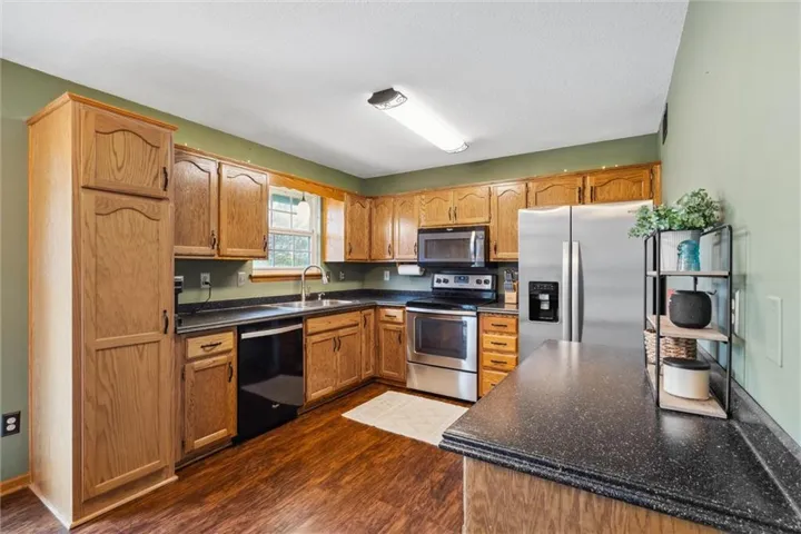+"PublicRemarks": "Located on a picturesque corner lot, this expertly maintained residence offers a rich array of desirable features. The main level offers vaulted ceilings, laundry facilities, a master bedroom with an en-suite private bathroom. The lower level features a spacious secondary living space/playroom, storage, and an oversized garage. Outside, the property presents a large deck overlooking the fenced yard, perfect for entertaining. Notable updates include new carpet and paint throughout, a newer water heater, and exterior paint."