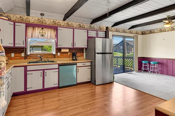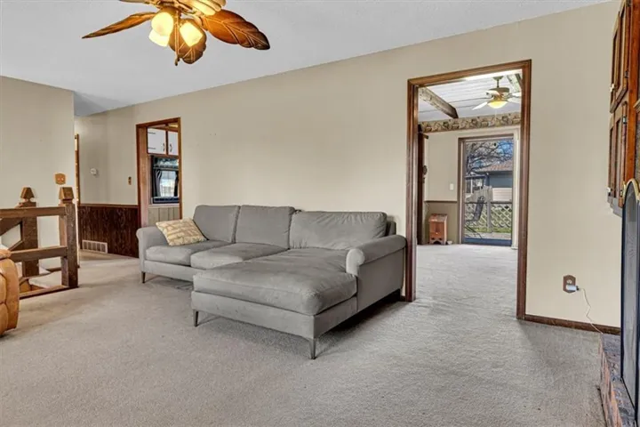 +"PublicRemarks": "Don't wait, you will miss this well-maintained 3 bedroom, 2 1/2 bath home with attached 2 car garage ideally situated on a large corner lot. Check out the character offered by the unique brick floor in the entry way and solid wood railing as you step up to the main floor which offers a spacious living room with built ins for extra storage and an operational wood burning fireplace. You will also find a large country kitchen with a brand new dishwasher, gas cooktop for the resident chef and connected dining space for family meals together. Summer evenings can be spent on the 12'x24' wood deck overlooking your large flat yard which provides ample space for the young and young at heart to get outside and enjoy. The lower level with a 2nd functional wood burning fireplace can be a recreational space or additional living space, whatever suits your needs best. The oversized corner lot offers you the opportunity to have a garden, play space, pet space, etc. The vinyl siding on the exterior of the home ensures you won't spend your summers painting the house! This home offers you small town living benefits and yet has great highway access for the times you do need to commute. Reach out to schedule your showing today!"