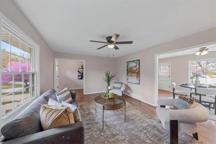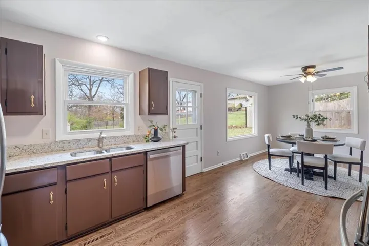 +"PublicRemarks": "This stunning home with an oversized lot has been thoughtfully updated inside and out! Meticulously customized with floor-to-ceiling upgrades, you will be close to the city’s best amenities: schools, parks, coffee shops, hospitals, major retailers, and easy access to commuter routes, and just over a 15-minute drive to downtown Kansas City. Huge, fenced backyard, patio area, and shed offer a perfect balance of privacy & play. Inside is open and bright with natural light flowing in from abundant [newer] windows in every room, with fresh interior and exterior paint, new oak floors throughout the entire main level, and refinished oak flooring throughout all the bedrooms, upper-level hallway, and stairways. New LVP flooring on the lower level covers a beautiful office and spacious laundry room with a new washer and dryer. The kitchen boasts new granite countertops, all new stainless-steel appliances, a new sink, a new faucet, an inviting coffee nook, and modern fixtures and finishes. The countless handpicked upgrades throughout this home include brand-new ceiling fans in every bedroom and the living room, and sleek, new doorknobs on all interior doors. The fully renovated hallway bath features a new tub, new toilet, and shelving for easy access and ample storage, while the primary bath boasts new flooring, freshly painted cabinetry, regrouted tile, new mirror, and fresh paint. Come experience the comforts of home in this one-of-a-kind charming gem."