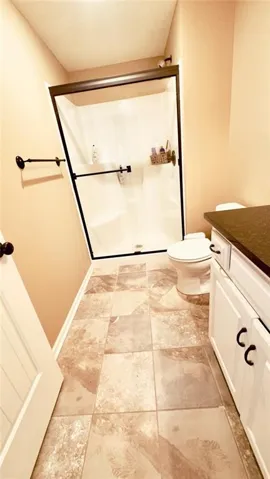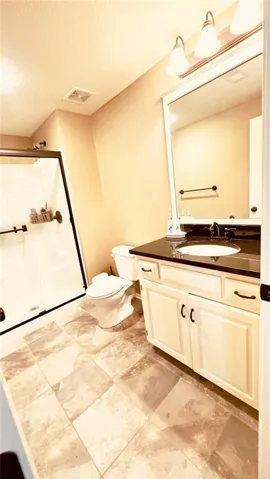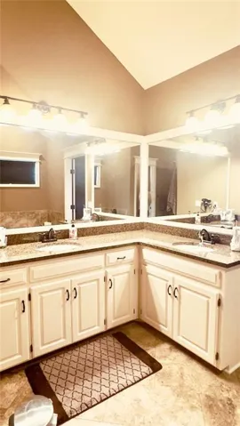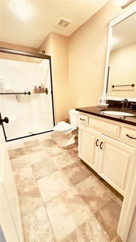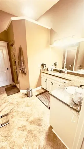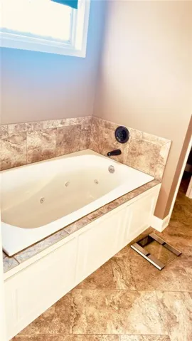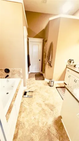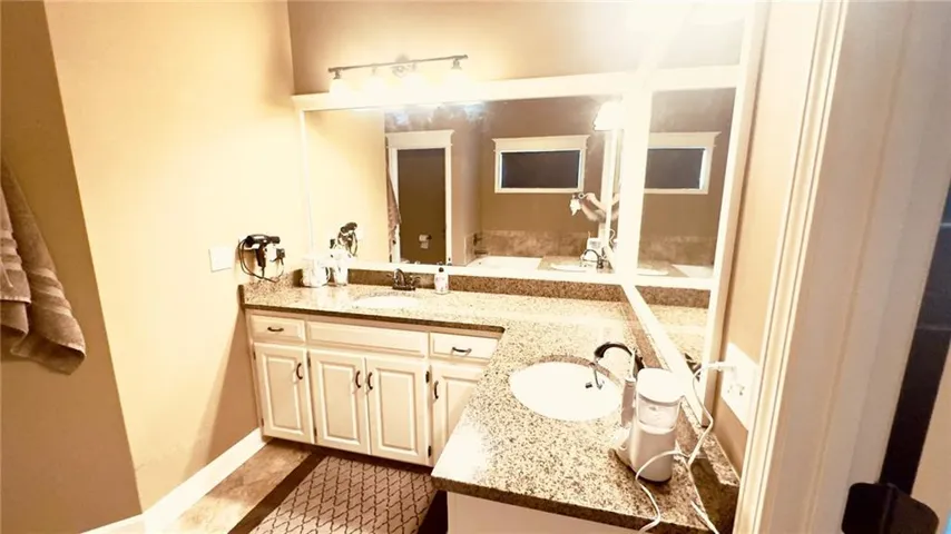 "LongDescription" => "Full bathroom featuring a spacious closet, double vanity, recessed lighting, and dark tile patterned floors"