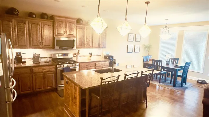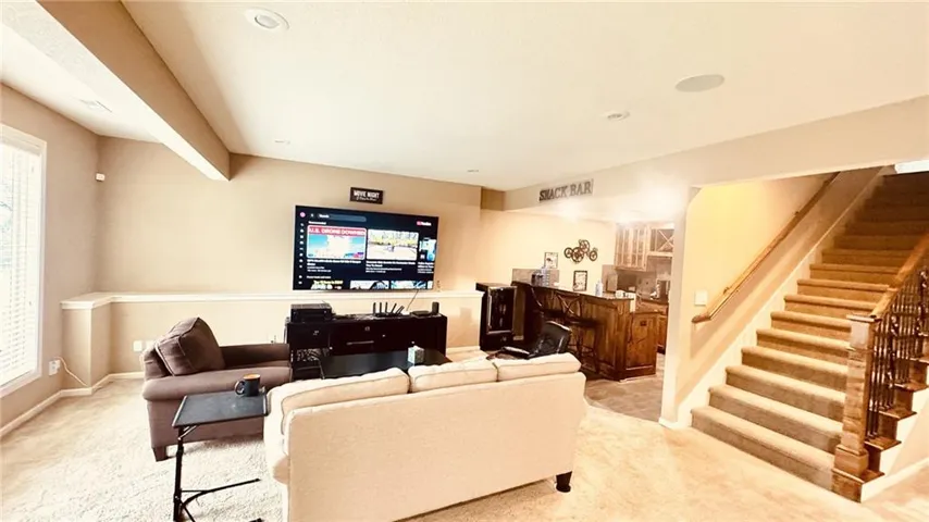+"PublicRemarks": "Original Owner – First Time on the Market! Nestled on a scenic plateau lot at 59th & Liberty Ave, this stunning Reverse Two-Story home is sure to impress with its luxury finishes and custom craftsmanship. From elegant crown moldings throughout to modern smart-home features like a Ring doorbell, security system, WiFi-controlled thermostat, and water softener, every detail has been thoughtfully designed. Backing east to a private, wooded estate, this home offers unmatched serenity and seclusion. 3 car garage with extended 3rd car garage allowing a owner built shop area. ? Granite countertops with an island overhang for seating four ? Ample cabinetry for maximum storage ? High-end Bosch super-quiet dishwasher ? Samsung stainless steel refrigerator (two doors, two drawers) ? Gas range & oven with built-in microwave ? Hot & cold water dispenser – enjoy instant hot water anytime! The kitchen flows seamlessly into the dining area and hearth room, where a gas fireplace adds warmth and ambiance. From here, step out onto the 14' x 10' covered and screened-in deck, complete with a mounted TV and Klipsch speakers for outdoor enjoyment. Every homeowner’s dream – a huge walk-in pantry – is conveniently located just inside the garage entrance. The Master Bedroom is a spacious with beautiful crown molding and an en-suite offering: ? Dual sinks with granite countertops ? Expansive walk-in closet ? Spacious walk-in shower ? Whirlpool tub Walkout Finished Basement designed for entertainment. Full wet bar with granite countertops, sink, dishwasher & extended bar seating. The third bedroom & full bath provide additional comfort for guests. An expansive walk-in closet and storage space. An additional large unfinished storage area is ideal for a home gym (metal shelves included) and includes a Tornado shelter for safety. Gas furnace, 40 gal water heaters and a whole-house water softener. Prime Location ? Easy access to Downtown KCMO, KCI Airport & more!"