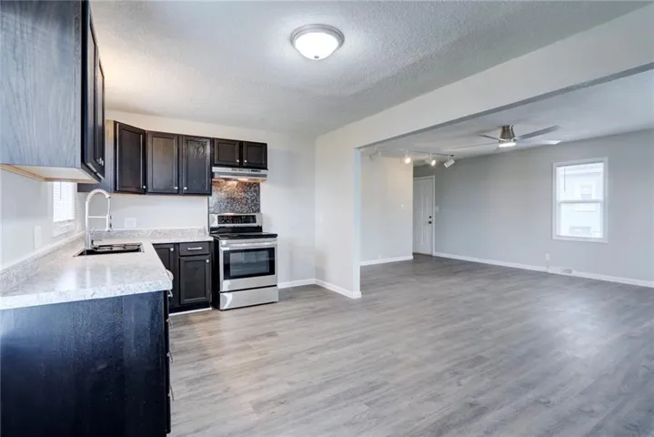 +"PublicRemarks": "Step inside this beautifully remodeled 2-bedroom, 1-bathroom home and fall in love with its modern updates and classic charm. Situated on a spacious corner lot, this home boasts all-new interior and exterior paint, creating a fresh and inviting atmosphere. New LVP flooring runs throughout the home, adding both style and durability. The remodeled kitchen is a true showstopper, featuring brand-new cabinets, stylish backsplash, and stainless steel appliances—all of which stay, including the washer and dryer! The large living room offers plenty of space for entertaining or relaxing. The updated bathroom has been completely refreshed with modern finishes. Outside, enjoy the brand-new deck, perfect for morning coffee or evening gatherings. New gutters have been installed, and a storage shed provides a convenient spot for lawnmowers and tools. The basement offers additional storage space to keep things organized."