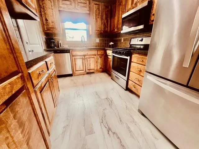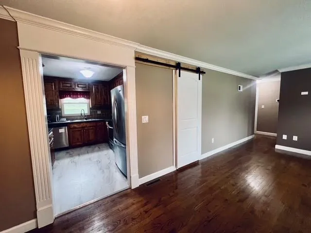 +"PublicRemarks": "My Oh My... This home has so much to offer. Much bigger than it looks! This immaculate home features two living spaces, including an office/playroom, a laundry room with a sink and a library or reading room. Gorgeous crown moulding around windows, ceiling and entry to kitchen! The 4th bedroom in the lower level and has two windows and a large closet. Thermal windows throughout home! New luxury vinyl tile just installed in kitchen and bath in 2025. Bath features a smart bidet. Gleaming hardwoods and hard surface flooring througout. No carpet! Interior painted in 2025, second parking pad installed in 2024. New microwave installed in 2025. New Dishwasher in 2024.Kitchen recently updated with a gas stove. All appliances stay. Large backyard! NO HOA. Raise some chickens or grow a garden! Cute outbuuilding to hold extra stuff! The lot would accomodate a second detached garage. This home is move in ready and just minutes from the new Greenway Elementary opening in the fall of 2025. Close to I-35 for a quick commute anywhere!! Buyer or buyers agent to verify sq ft, taxes and school boundaries. Seller will provide a home warranty with acceptable offer."