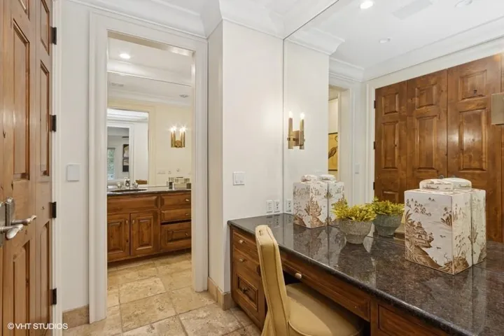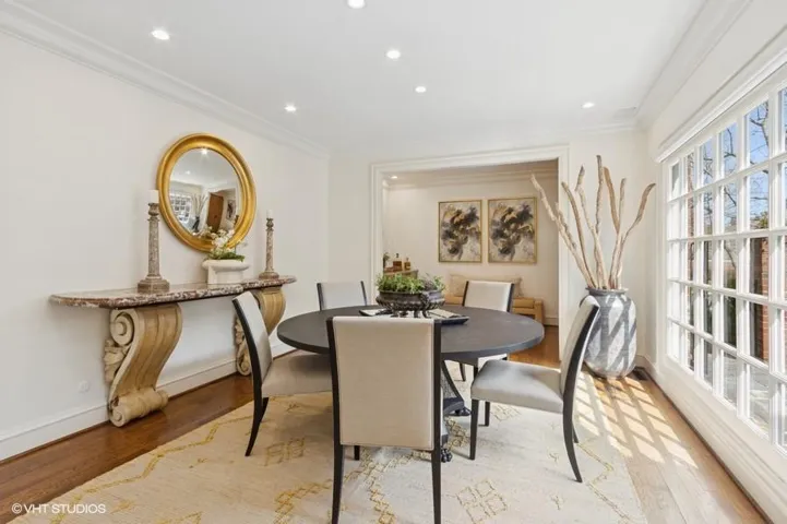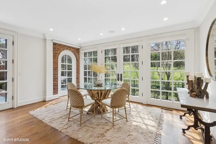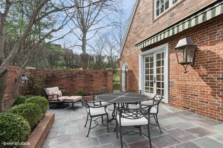 Enjoy effortless entertaining with French doors opening to the slate patios and an outdoor dining area framed by brick walls and custom wrought iron gates, offering unobstructed views of impeccably maintained HOA grounds.\r\n