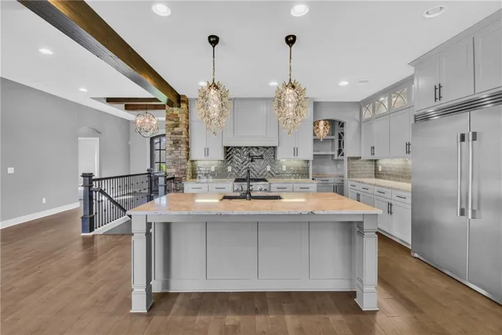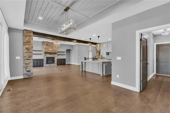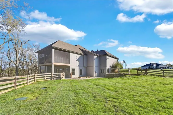 +"PublicRemarks": "This stunning 5-bedroom, 4-bath reverse story-and-a-half/ranch home sits on 3 acres just outside Pleasant Hill, MO, offering both privacy and convenience with blacktop roads. Featuring top-of-the-line finishes throughout, the home combines modern luxury with a spacious, open floor plan. The expansive main level includes a gourmet kitchen, large living areas, and a master suite retreat. The finished basement offers additional living space, perfect for entertaining, with a wet bar and plenty of room for relaxation. With extra bedrooms and baths, this home provides ultimate comfort and style, ideal for those seeking a tranquil, upscale retreat close to the city."