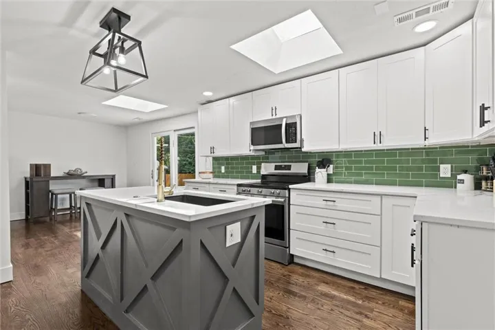+"PublicRemarks": "Step into luxury with this exquisitely renovated Prairie Village classic! This 4-bedroom, 3-bathroom home seamlessly blends timeless charm with modern elegance across 3,000+ sq ft of thoughtfully designed living space. The main level welcomes you with a warm and inviting living room, featuring an updated stone fireplace, alongside a versatile formal dining space—ideal as a playroom or stylish entertaining area. The open-concept kitchen is complete with a remodeled design, oversized island, and charming breakfast nook offering picturesque views of your private in-ground pool—just in time for summer! Just behind the kitchen, you'll find a spacious bedroom next to a full bath, while the primary suite boasts vaulted ceilings, a walk-in closet, an elegant laundry suite, and a built-in coffee bar—a retreat designed for both luxury and convenience. Upstairs, two generously sized bedrooms provide ample space for family or guests. Outside, your expansive backyard oasis is built for entertainment and relaxation. Host unforgettable summer parties by the sparkling in-ground pool, complete with ample space for lounging, dining, and soaking up the sun. Whether it’s a sunset cocktail hour, weekend barbecue, or a lively gathering with friends, this backyard is the ultimate setting for summer fun. A large shed offers additional storage for pool or lawn equipment, while a beautifully crafted pergola off the primary suite provides a cozy escape for evenings under the stars. Don’t miss this rare opportunity to own a stunning, move-in-ready home with the ultimate backyard retreat—just in time to make this summer unforgettable! Perfectly situated in the heart of Prairie Village, you’re just moments from The Village Shops and the vibrant dining and shopping scene along Mission Road."
