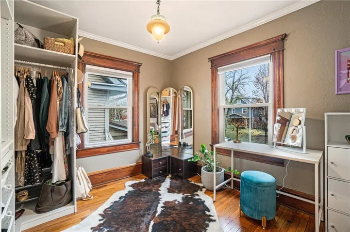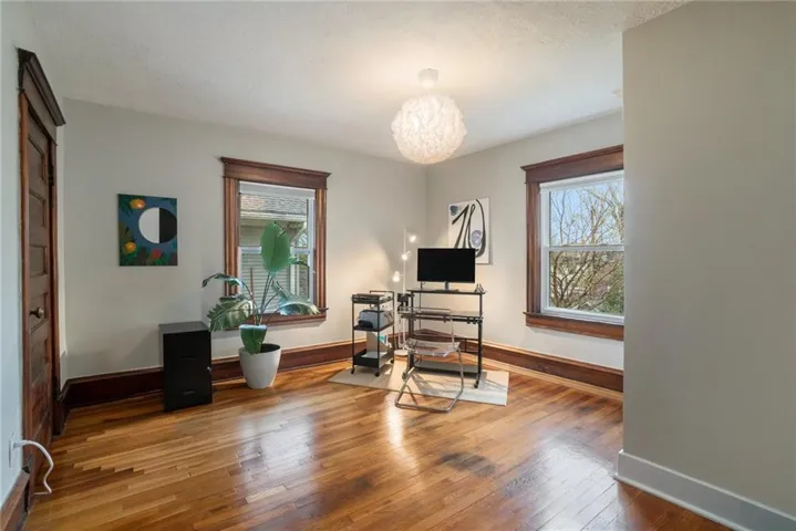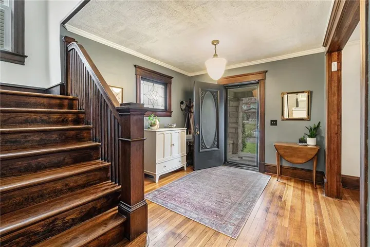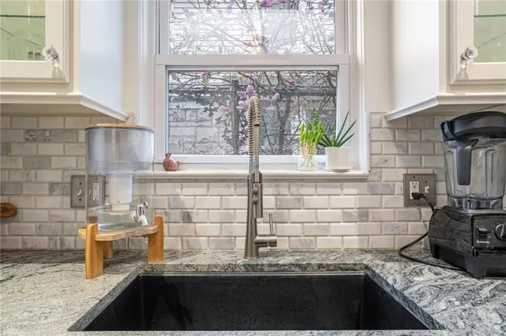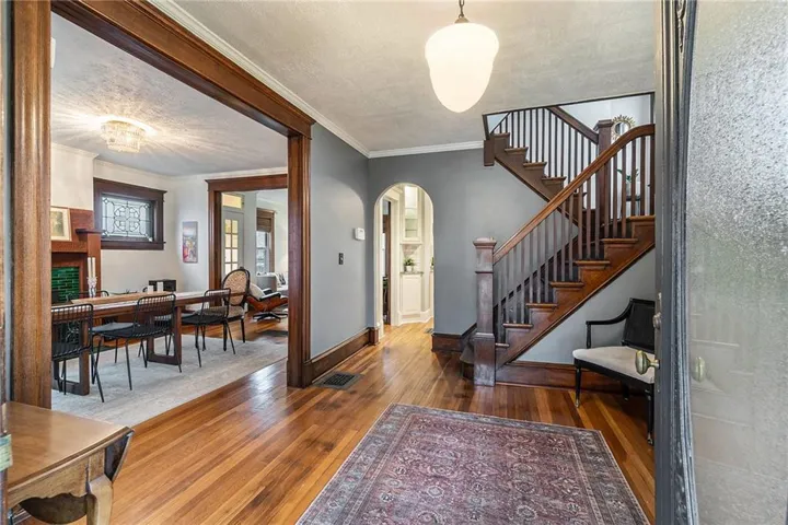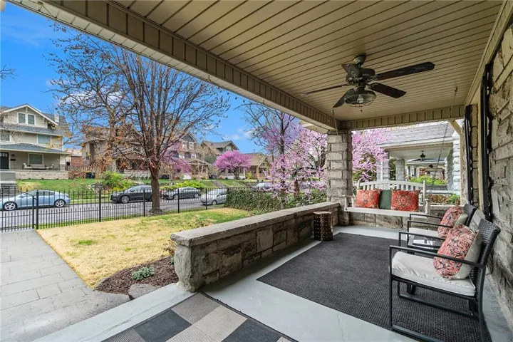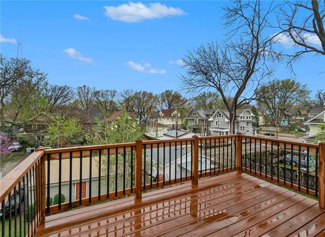 +"PublicRemarks": "Offer Deadline Sun. 4/13 5pm Renovated Shirtwaist Home Blending Old World Charm with Modern Living. Step into a stunning blend of timeless craftsmanship and modern comfort in this fully restored 3-story home. This distinctive residence features soaring ceilings, beautifully refinished original hardwood floors, a striking arts & crafts green subway tile fireplace with mantle, solid wood panel doors, and vintage brass hardware and light fixtures. Elegant woodwork, crown molding, and trim flow throughout, complemented by two original leaded glass windows that add historic charm, every space is filled with character. This 3 bedroom, 2 1/2 bath native limestone beauty is flexible and spacious; with 2 optional primary suites. One on the 2nd floor and one on the 3rd floor. And the 3rd bedroom is on the 2nd floor currently set up as an office with one of the closets utilized for the stackable laundry. Enjoy formal living and dining rooms perfect for entertaining, & chef’s kitchen. The timelessly designed kitchen is a showstopper, with custom ceiling-height cabinets, leather honed granite countertops, stainless steel appliances, a drawer microwave, gas range with double ovens, and pantry with pull-out shelving. Enjoy the covered front porch with a ceiling fan, a generous back deck, and a third-floor martini deck. The front and back yards are fully fenced -including beautiful wrought iron - and they are beautifully landscaped with stepping stones leading from the deck to the garage. Thoughtful updates, include low-maintenance vinyl siding, double-hung thermal windows with dual weather stripping, a 3-ton A/C system, and updated 100-amp electrical panel and plumbing. The structurally sound stone basement is neat, tidy and functional for storage and also includes the original laundry. The current stackable laundry has been located on the 2nd floor for convenience. Don't miss your opportunity to own this exceptional piece of Kansas City style - schedule your showing today!"