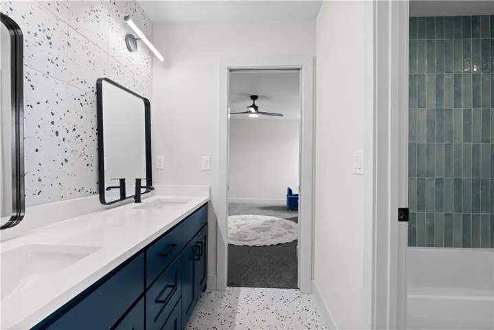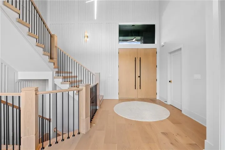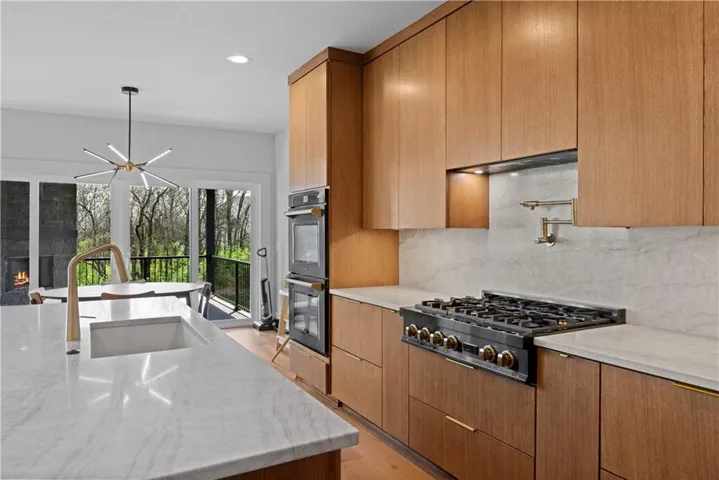 +"PublicRemarks": "CUSTOM BUILT DREAMHOME on nearly a HALF ACRE that backs up to green space kept by the HOA! Walk into luxury with upwards of 150K in upgrades! From the moment you open the oversized oak stained front door all you'll see is luxury! Starting with the dramatic entry with modern chandeliers to the custom rift white oak cabinetry that is drenched with Taj Mahal Quartzite spanning across countertops all the way up the kitchen backsplash. The home is wired for automatic window treatments, outdoor security cameras, and surround sound in the movie room! The 60" modern gas fireplace is tiled to the CEILING with imported large format tiles. Master bedroom is color drenched for a contemporary moody aesthetic with gorgeous hints of gold everywhere you look including the fireplace and MARBLE door knobs. Master en suite is tiled head to toe with a zero entry shower and contemporary soaking tub to give you a spa like feel after a hard days work. Custom built in dressers and closet storage is found in the master closet so no need to have dressers in your gorgeous new bedroom. Head up the white oak staircase to find 3 good sized bedrooms, and two full bathrooms. The basement features a movie room with built in rift white oak storage, taj mahal counters, and is ready to be the media room of your dreams! The wide open staircase also features a finish foyer at the bottom perfect for a office or homework space. The unfinished portion of the basement is stubbed for a full bathroom, kitchenette, and egress for an additional bedroom. The full size slider walks out to a massively oversized patio perfect to entertain on your new half acre lot!"
