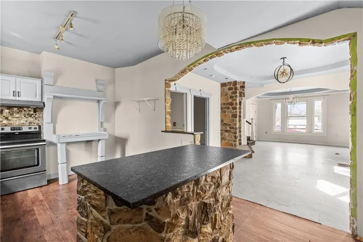 The kitchen is the heart of this home, with a unique island and beautiful chandelier lighting that make it a perfect spot for both everyday meals and entertaining. Plus, the unfinished basement offers plenty of room for storage or the potential to create something uniquely yours.\r\n