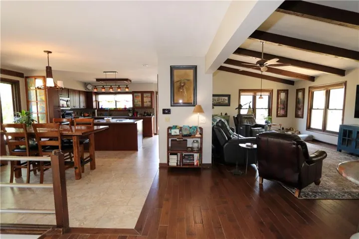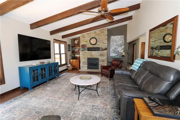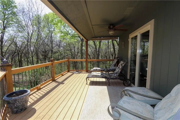 +"PublicRemarks": "Brand new impact 3 roof w/ warranty! Situated at the end of the street, enter through the private electric gate and directly into this FULLY FENCED and cross-fenced oasis you get to call home. On nearly 8 acres in the Blue Valley School district this 3 bdrm , 3 bath home with wrap-around double decks, 2 outbuildings, and a year round greenhouse is a rare gem in Johnson County. Vaulted ceilings, enourmous windows, floor-to-ceiling stone woodburning fireplaces, exposed wooden beams, and hardwood floors mesh perfectly to bring the ouside in, providing the luxury you desire. The updated eat-in kitchen, complete with a recessed SS refigerator, island, and custom cabinetry make cooking a breeze! Pass the second bedroom and full bath and enter your own completley remodeled Master retreat, redesigned incorporating a 4th bedroom and expanding it's footprint with a spa-like bathroom and large walk-in closet. Enjoy your coffee every morning on your private Master walkout deck overlooking the beautiful unobstructed view and endless wooded areas. The lower level walkout family room has a custom brick wood burning fireplace, brand new LVP floors, and a covered patio! The large downstairs bedroom has abundant natural light and is the perfect private 3rd bedroom. The updated full bath features a walk-in tile shower and contempoary vanity. The redesigned laundry room, second optional laundry room or a possible full kitchen provides the perfect set-up for generational living. The house is amazing, but it's the outside that will steal your breath away! Besides the greenhouse, you'll find a 3rd detached garage for all your toys. The 2nd outbuilding, complete with a concrete floor, HVAC and running water, is currently being used as an art studio, with a seperate fenced-in dog play yard. Enjoy a campfire, play in the creek, or walk the many trails. The brand new swim spa isn't staying, but there is an option to leave it if you love it! Sellers are motivated and would prefer a fast close!"