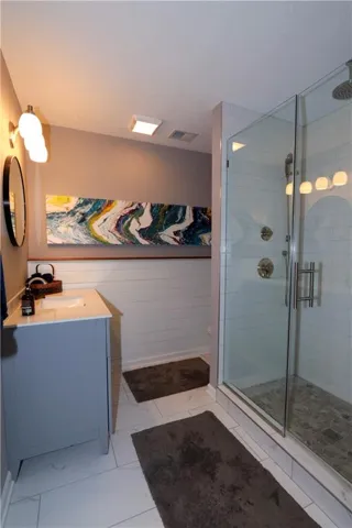 "LongDescription" => "Full bath featuring a shower with shower curtain, backsplash, vanity, and wood-style floors"