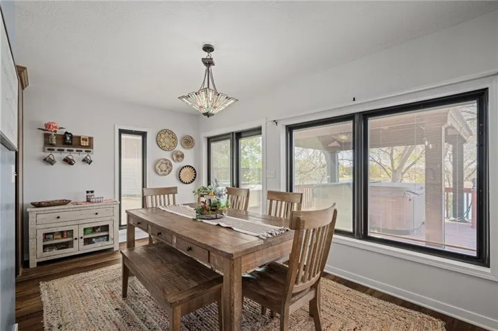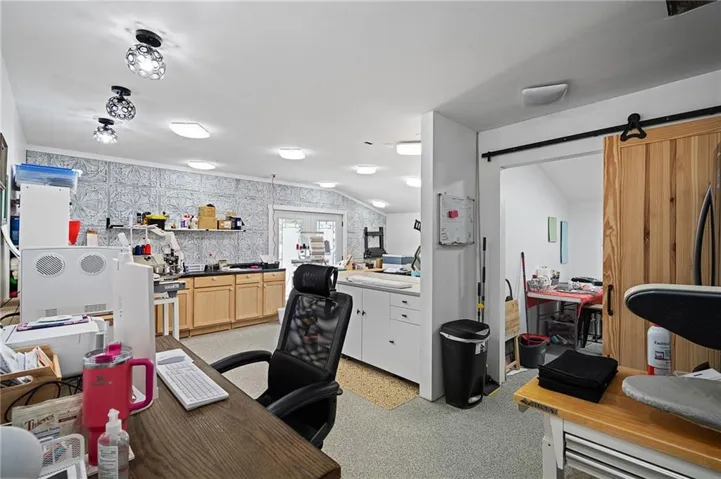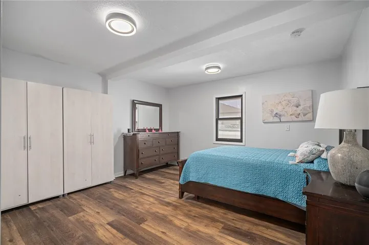 Thoughtfully and extensively updated, this residence blends modern design with lake life charm. Improvements include luxury vinyl flooring, updated kitchen countertops, backsplash, sink, and faucet, and the removal of popcorn ceilings throughout. The bathrooms have been beautifully remodeled and feature heated floors, adding everyday comfort and a touch of luxury. Additional upgrades like new interior and exterior doors, a walk-in pantry, and sleek hardware elevate every detail. A bright, versatile flex space at the front of the home, complete with heating, cooling, epoxy floors, and double-door access, offers endless possibilities for a workshop, home office, gym, or creative studio. The sewer line was replaced in 2023, offering peace of mind for years to come.\r\n