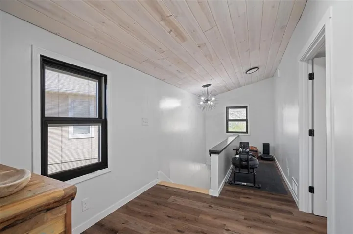 "LongDescription" => "Bedroom featuring LVP floors, ceiling fan, wood ceiling, and wood walls"