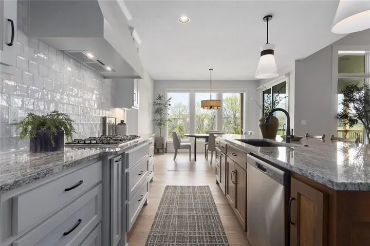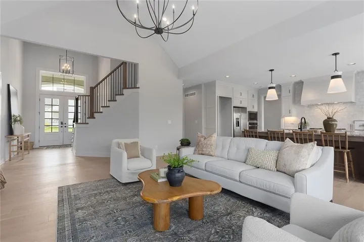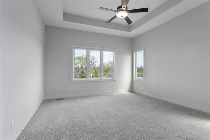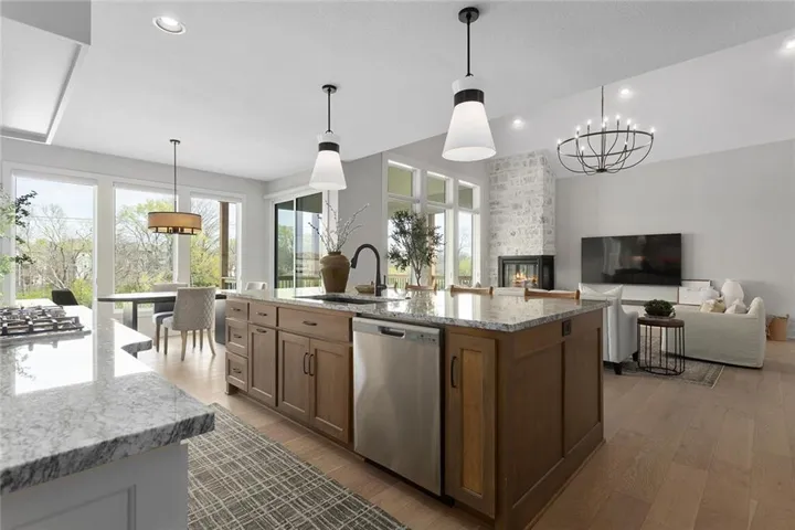 +"PublicRemarks": "The popular & AWARD WINNING design, Truman 1.5 story home, by Bickimer Homes, in Cedar Ridge Reserve. This stunning home features a main level primary suite and home office with full-length windows and a convenient half bath. A dramatic double-door entry leads to the cathedral-vaulted great room, showcasing a wall of windows that open to the covered deck, along with a striking floor-to-ceiling stone fireplace. You'll love the gorgeous hardwood floors and the chef’s kitchen, including an oversized stained island, granite countertops, under-cabinet lighting, stainless steel appliances/fridge, and a spacious walk-in pantry. Upstairs, the designer stair carpet leads you to a beautiful loft w/hardwoods, 3 bedrooms w/walk-in closets, a shared Jack and Jill bath, and a private full bath. The huge walk-out lower level is unfinished, includes a bath rough-in and egress window—perfect for future customization. You'll also love the raised patio upgrade, 3-car garage with an impressive mudroom, and lush landscaping with irrigation. Ideally located with easy highway access, minutes from dining, shopping, and nestled between Olathe NW High School and Stone Pillar Winery. Community features a 1.8-acre private park. MOVE IN READY and the FINAL new home in highly sought-after Cedar Ridge Reserve — Priced below reproduction!"