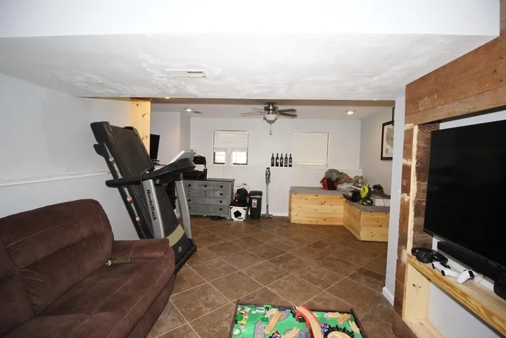 "LongDescription" => "Finished basement with light colored carpet and recessed lighting"