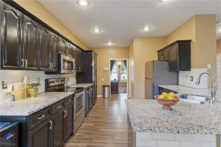 +"PublicRemarks": "Come explore the award-winning Shea II Ranch by DCB Homes! This 4-bedroom, 3-bath beauty features a striking new front porch elevation and an inviting open layout designed for modern living. The main level impresses with a vaulted ceiling spanning the Great Room and Kitchen, creating a bright, airy feel. The kitchen offers abundant cabinetry, a large island, built-in appliances with a gas range, and a walk-in pantry. A spacious dining area is a buyer favorite that opens to the back deck—perfect for entertaining. The primary suite features a walk-in shower, freestanding tub, double vanities, and a generous walk-in closet. Two additional bedrooms and a full hall bath are conveniently located on the opposite side of the main level, along with a laundry attached to the Primary and mudroom. The finished Lower Level includes a large rec room with bar, fourth bedroom, third full bath, and two large storage areas. A 3-car garage completes this fantastic plan. **This home is at the PRE-CONSTRUCTION phase. Photos are of a similar home. Taxes are estimated.** Lakeview Ridge is a new build community just west of Lake Olathe with great homes started and fantastic lots available. POOL coming in 2027. You can get to the neighborhood off of Dennis & Houston with easy access from K7 or coming from Lakeshore. Our Sales Office is located 14271 Houston. Our development is right next to Lake Olathe and neighborhood feeds into Clearwater Creek Elementary, Oregon Trail Middle School and Olathe West High School."