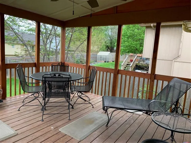 +"PublicRemarks": "Bring a contract! Cutie Pie. Original owner had custom built-ins throughout the home. Beautiful high ceilings in the entry great room with a fireplace, bay windows, and more. Just three steps to the main floor to the amazing country kitchen which is plus sized! Includes a walk-out from the kitchen to your covered deck for seasonal entertainment. The backyard is fully fenced and nicely landscaped. The owner's suite is approximately 16 x 18 with a walk-in closet, and your custom built private bath with a full tub with shower overhead plus a separate shower. The lower level has a family room with high ceilings, half bath, and an additional exercise room with two closets. The garage has space for a work bench. This is a well cared for home and I can't wait for you to see it!!"