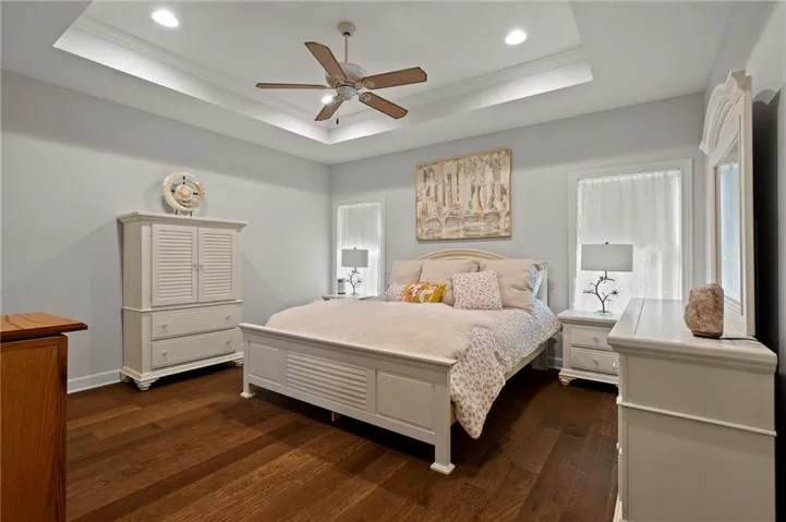 Downstairs, a large recreation room and two bedrooms, and a full bath would be ideal for guests. t. Step out onto the covered deck or relax on the patio while enjoying a serene view of the tree-filled back border—It's a perfect private retreat.\r\n