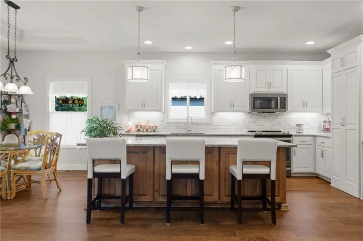 YIKES!!! WE NEED A NEW HOME BEFORE THE END OF JULY 2025! This craftsman styled home is only 3 years old and backs to trees. There is a covered deck and the huge kitchen includes a walk-in pantry completing a chef's dream; featuring granite countertops on both the large island and surrounding cabinetry. All kitchen appliances stay and are upgraded. I CAN'T WAIT TO SEE THE SEPARATE DINING ROOM. We haven't seen another home with an open floor plan that offers a separate dining room. We could even use the formal dining room as your office (on the main floor). When you retire and don't need the in-home office, we could convert that room to another use. The main floor also includes an open floor plan with kitchen, living room, and breakfast room that opens to the covered deck.\r\n