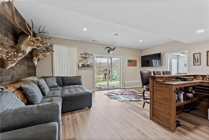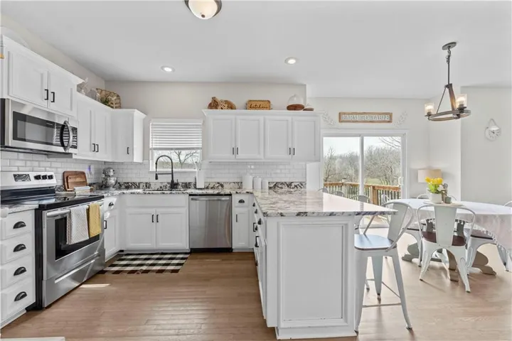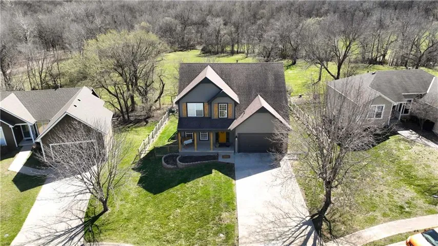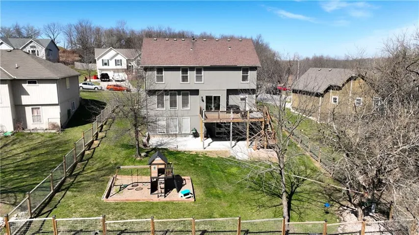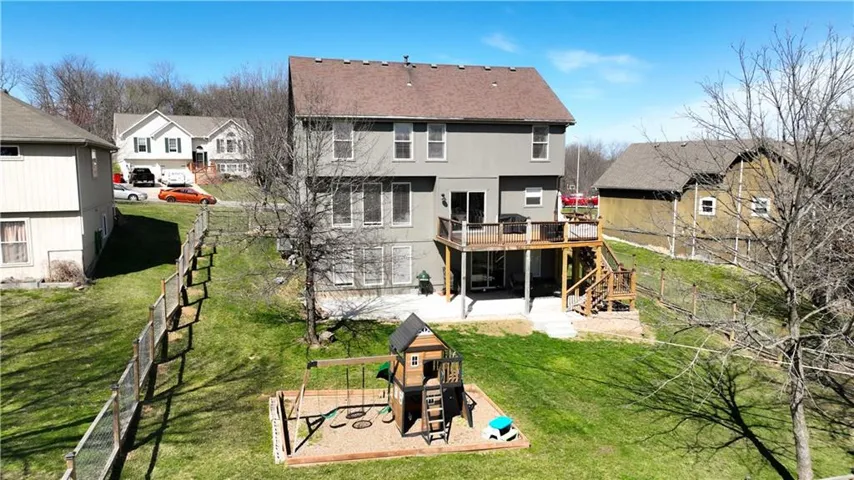 +"PublicRemarks": "Welcome to this beautifully maintained two-story home featuring 5 bedrooms and 3.5 bathrooms in the desirable Lone Jack School District. This charming home backs to peaceful green space, offering scenic views and added privacy. Enjoy outdoor living on the upgraded composite deck, perfect for entertaining, or unwind on the extended patio in the fully fenced backyard. Inside, you’ll find a light-filled layout with a spacious living room, an elegant formal dining space, and a stylish kitchen with granite countertops, white cabinetry, and stainless steel appliances. Upstairs, the generous primary suite offers a tranquil retreat with 3 additional bedrooms upstairs. The walkout basement provides additional living space and direct access to the backyard play area. With tasteful finishes, an inviting front porch, and a quiet setting, this home offers comfort, convenience, and timeless appeal. Call to schedule your showing today."