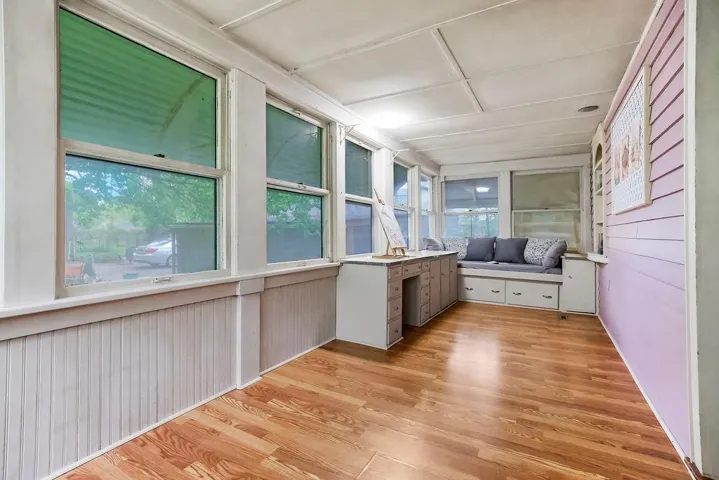 +"PublicRemarks": "Step into the timeless character of this 1930s bungalow, nestled on an over-sized lot in a charming neighborhood . This 2-bedroom, 1-bath home is rich with period details including arched doorways, built-ins, wall sconces and decorative metal fireplace accents that reflect the craftsmanship of a bygone era. This property offers a rare chance to restore a home full of original charm and character. Perhaps the most charming feature of all: a bonus 9 x 21 sleeping porch with built-in bed and counters—perfect for a sun-drenched reading nook, studio, or guest space. There is also a 9 x 10 enclosed back porch with built in cabinets and an unfinished partial basement providing added flexibility and storage. The detached 1-car garage includes a workshop, ideal for hands-on projects. A backyard shed offers added storage—or the perfect starting point for that dream she-shed or man-cave. Even better, a nearby concrete pad provides space to add a second shed, so everyone gets their own retreat. This home is a fixer-upper and does need repair, see the supplements for more details. Whether you're drawn to its vintage charm or the potential to create something truly special, this bungalow is a rare gem ready to shine again. Offered as-is and priced to reflect its condition."