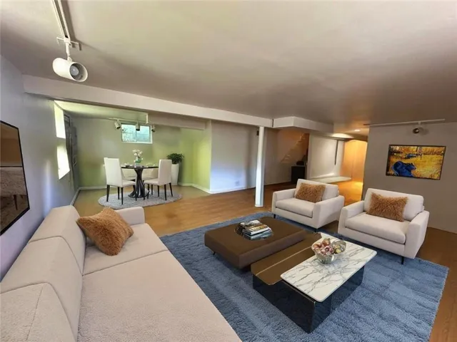 "LongDescription" => "Living area with carpet floors, baseboards, and recessed lighting"