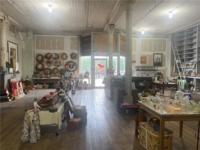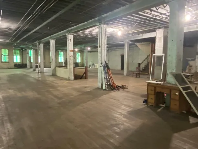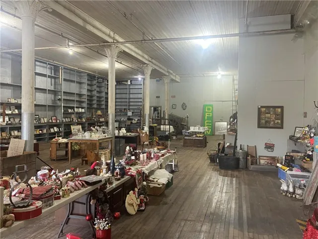 +"PublicRemarks": "Need lots of space? This definitely fits the bill. Four massive floors of open space plus a basement. Tall ceilings, antique beams, fire escape and an awesome working freight elevator--so much character in this historic building. There is also staircase access to all floors. Dry sprinkler system throughout which was serviced, tested and cleaned in July, 2024. Alarm system connected to sprinkler system. Spectacular built-in floor to ceiling shelving on first floor has wide range of uses. Garage door in back plus a loading dock on the side. The possibilities are limitless. Was the home of Combe Printing Company, Noma Lites and Whitaker Cable Co. Most recent use was retail antique goods store. SELLING AS IS"