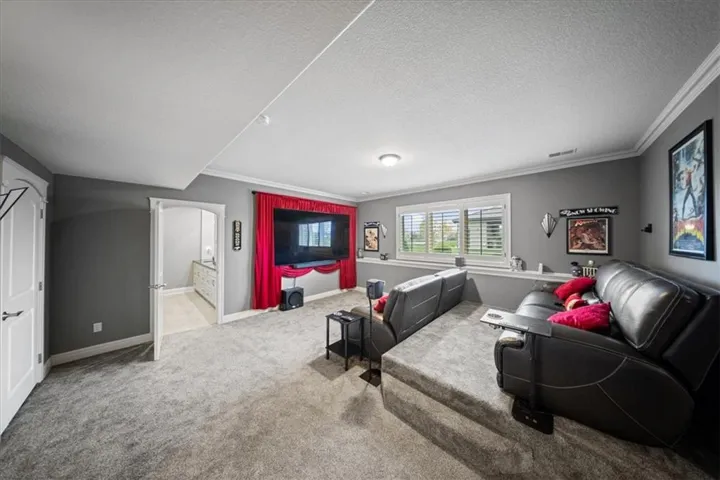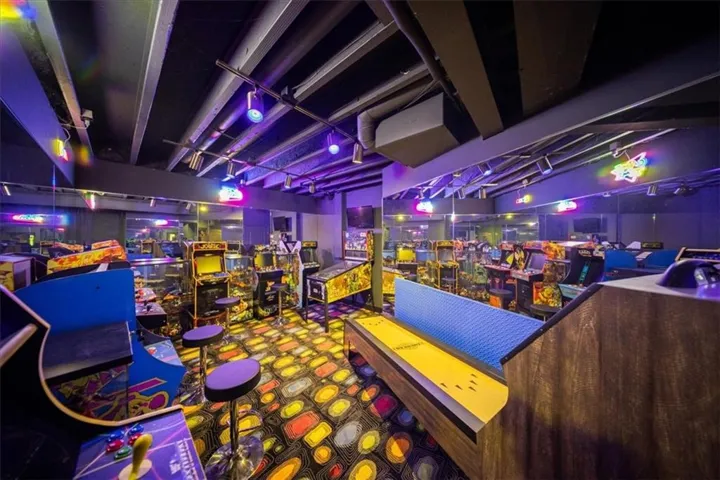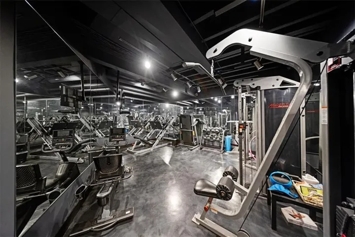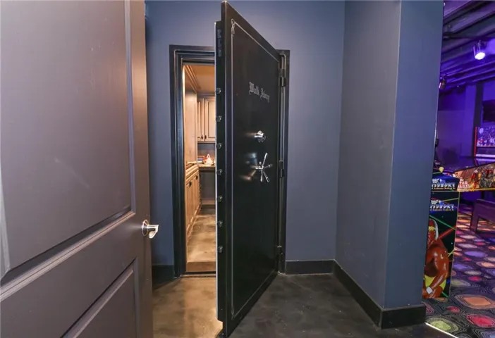 The amazing arcade room, complete with vibrant carpet and backlights! Workout room features bolted, high-end equipment that remains with the home, and a walk-in safe/safe room offers peace of mind.\r\n