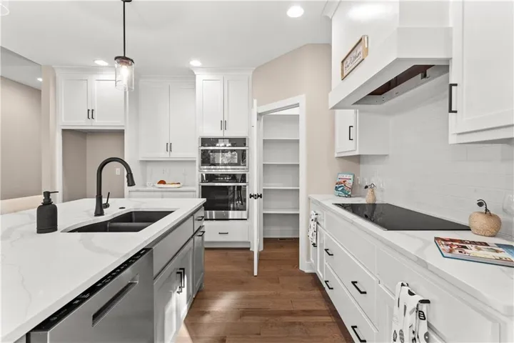 +"PublicRemarks": "Amazing straight ranch on a spacious, treed lot. The open kitchen impresses with custom painted cabinets, quartz countertops, a large island with breakfast bar, pantry, and premium appliances, including built-in and convection ovens, an oversized cooktop with downdraft, and a dishwasher. The living room features 12’ ceilings, a floor-to-ceiling tile fireplace, and an abundance of natural light. The primary suite is a peaceful retreat with large windows overlooking the private backyard. The en-suite bath offers a fully tiled walk-in shower, dual quartz vanities, and a linen closet. A spacious walk-in closet adds convenience and function, making this suite the perfect blend of comfort and modern style. Enjoy main floor laundry and a screened-in, covered composite deck with stairs to the yard. Additional highlights include a seven-zone irrigation system, a huge unfinished basement with egress windows and plumbing for a full bath, and a high-efficiency, environmentally friendly HVAC system with humidifier and 14 SEER A/C unit featuring the new R-454B refrigerant. Quality, comfort, and craftsmanship come together—schedule your showing today! Owner/agent"